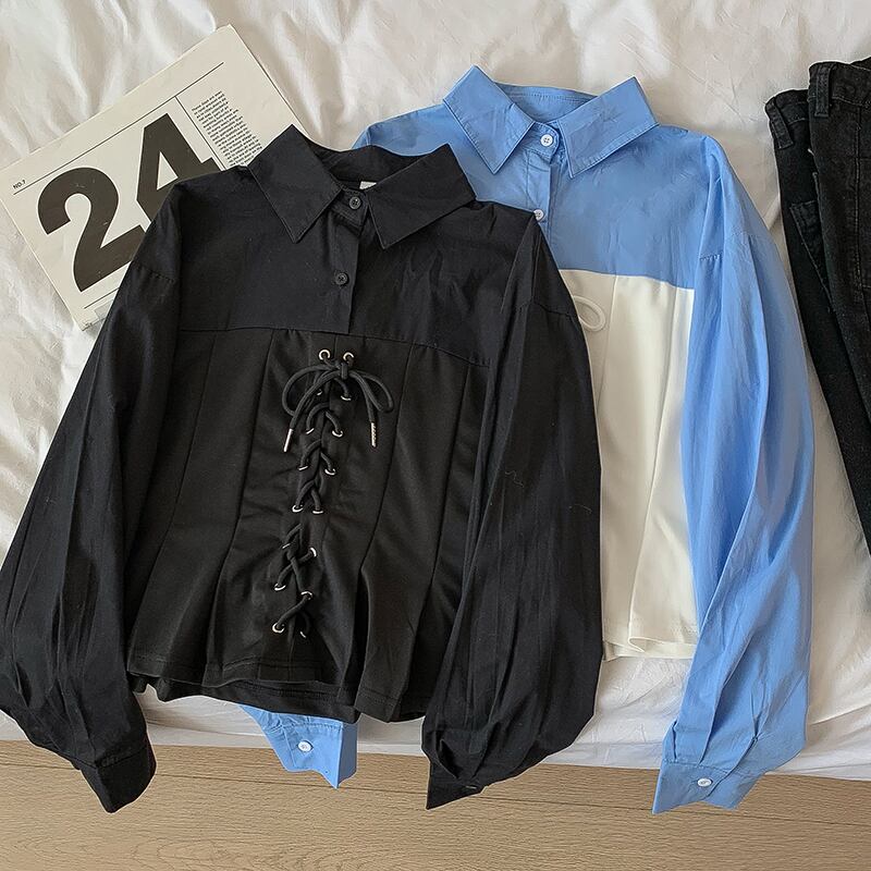 Nomikuma 包帯スリムウエストターンダウンカラーブラウス女性 2023 春長袖シャツデモーダ ロング スプリング 春物 kor35954747761