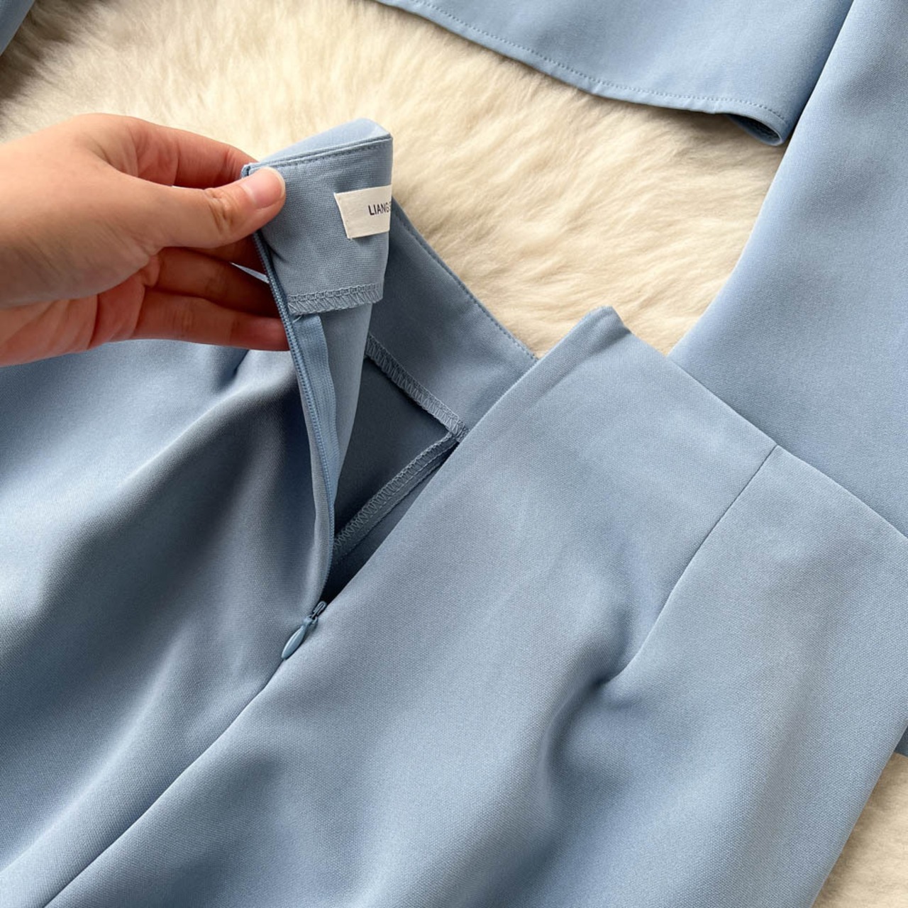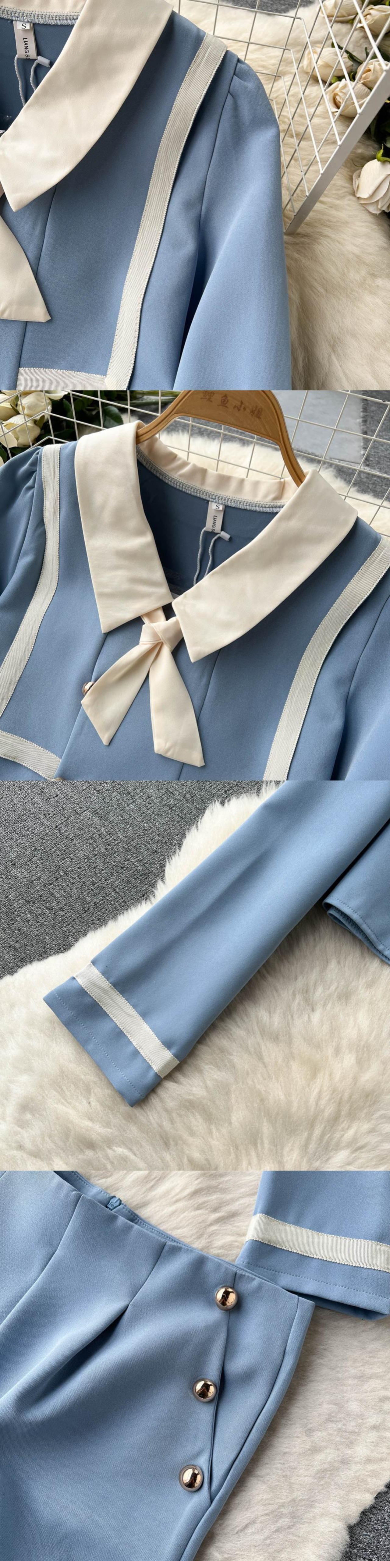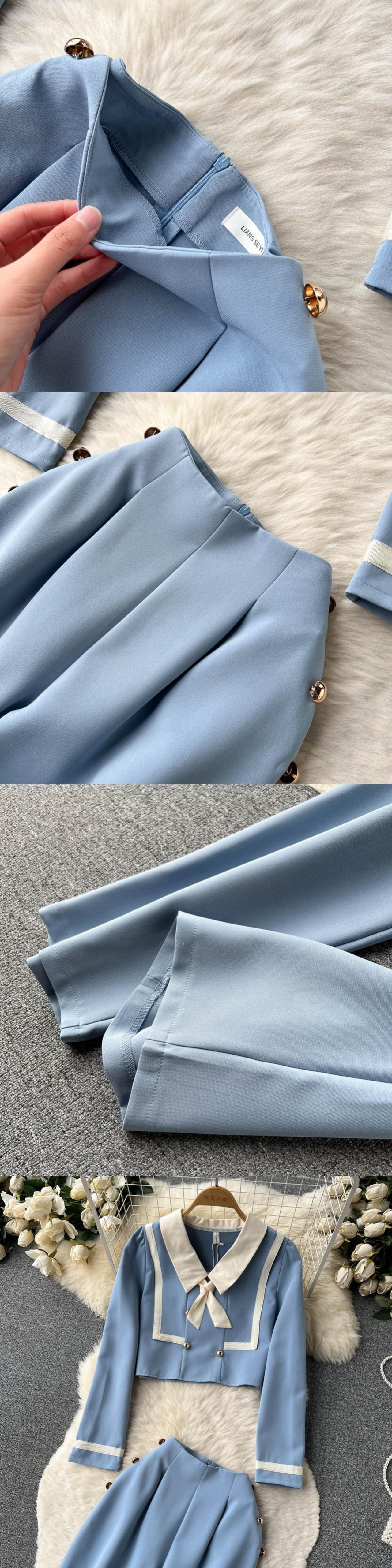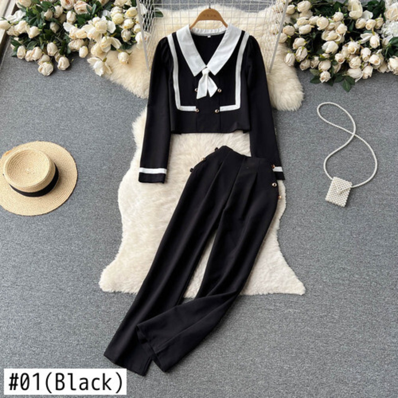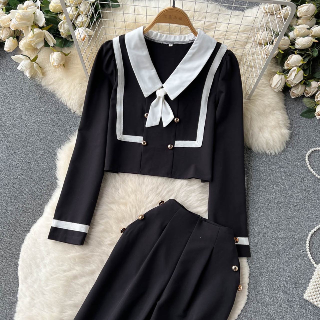 Nomikuma 春秋ツーピース女性セットヒットカラーターンダウン襟長袖ショートトップス + ウエストロングパンツ衣装 スプリング 春物 オータム 秋物 kor81147884661
