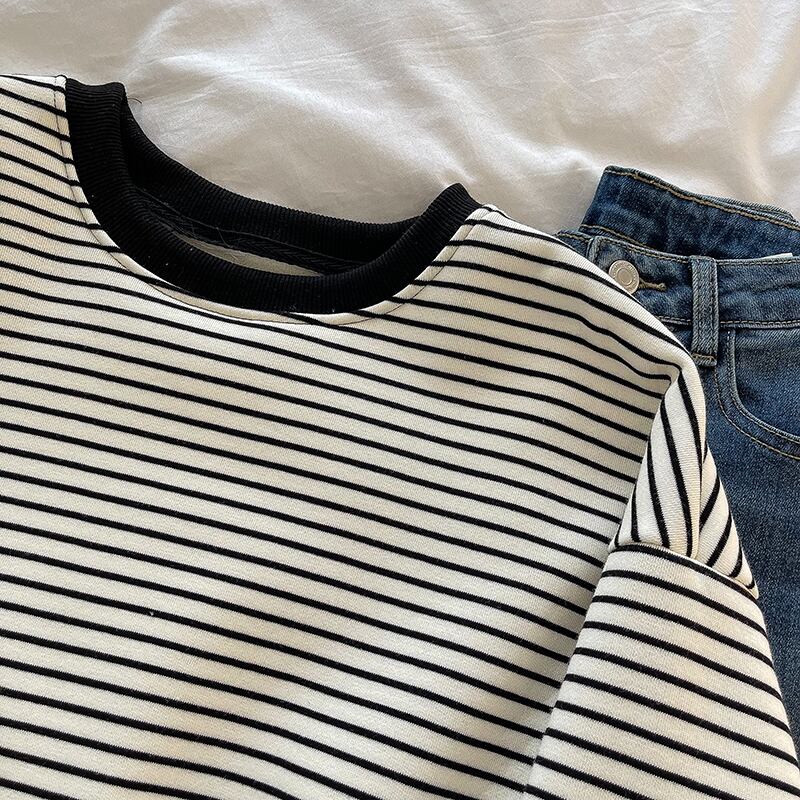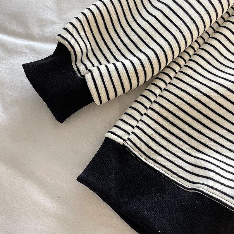Nomikuma フリースヒットカラーストライプ長袖スウェットシャツ 2022 冬の女性因果パーカートッププルオーバージャンパー ロング ウィンター 冬物 kor70143047521