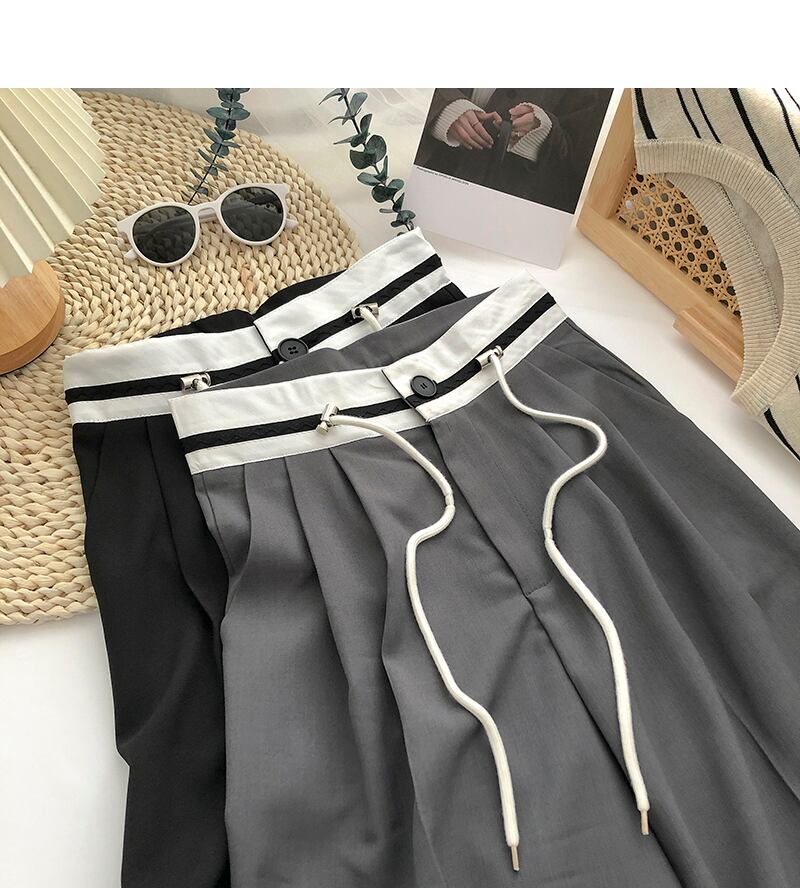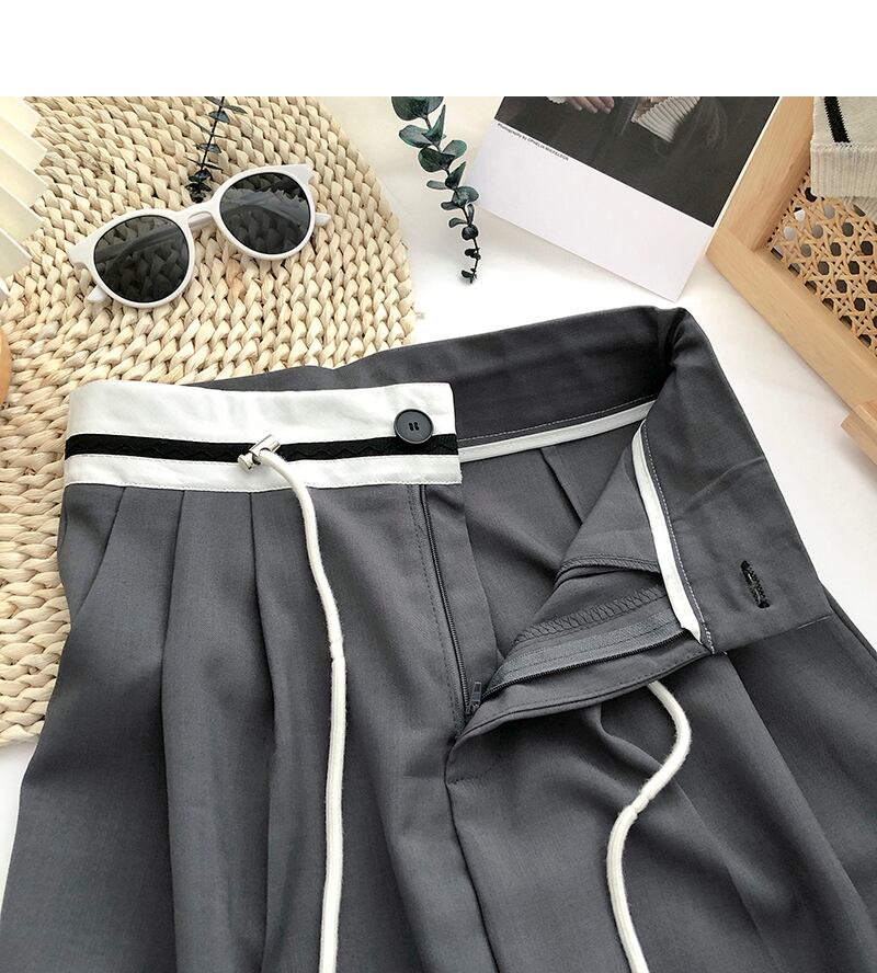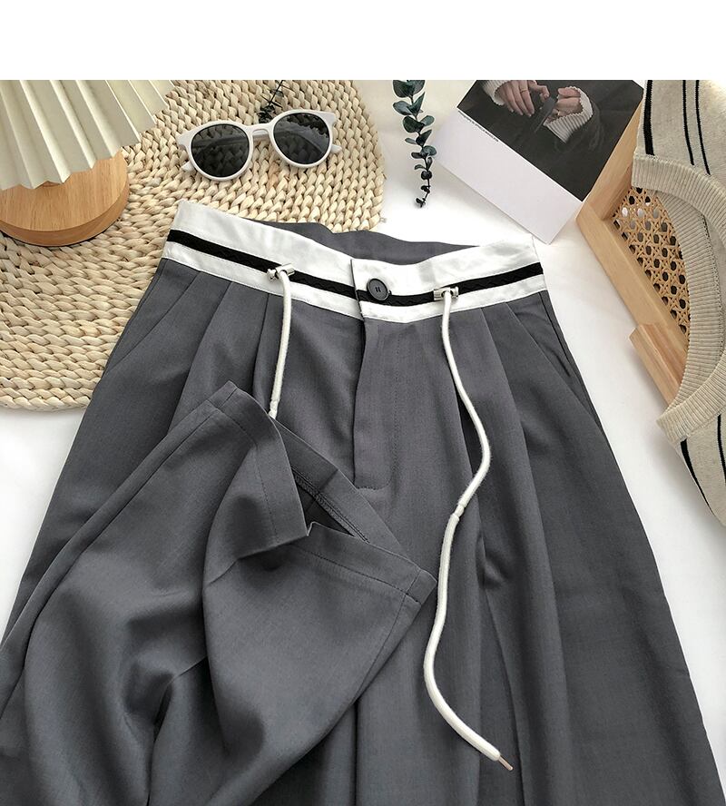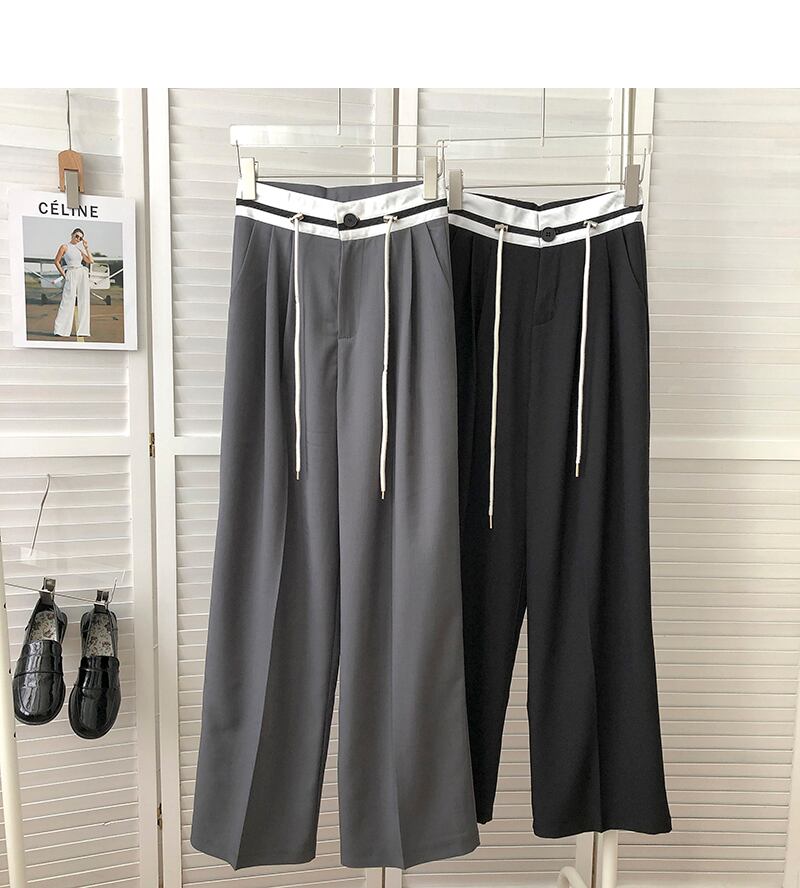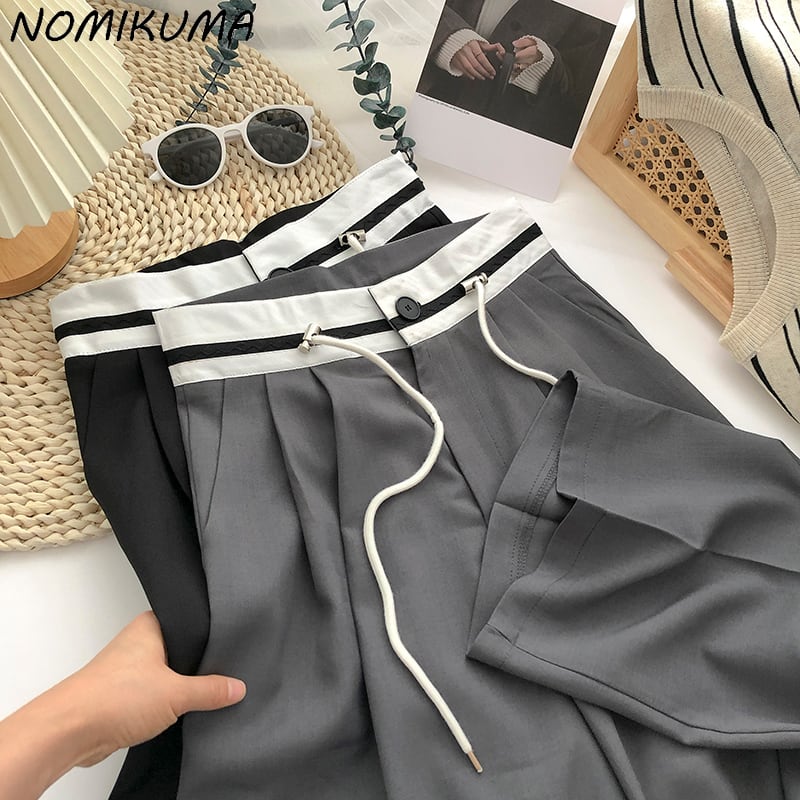 ノミクマ コントラストカラー ドローストリング レースアップ ウエストスーツパンツ コーザル 2022年 長ズボン ワイドレッグパンツ ロング ワイドパンツ kor36430818754