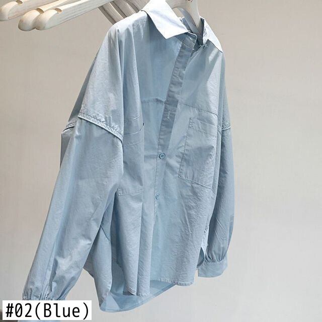 Nomikuma 因果不規則なブラウストップスポケット長袖無地女性シャツ春秋無地デモーダ ロング スプリング 春物 オータム 秋物 ソリッドカラー kor78085460525
