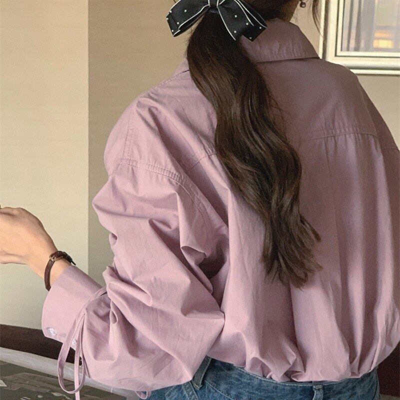 ノミクマ 2023 春 巾着 長袖 ブラウス シャツ ターンダウンカラー トップス ロング スプリング 春物 kor454842012