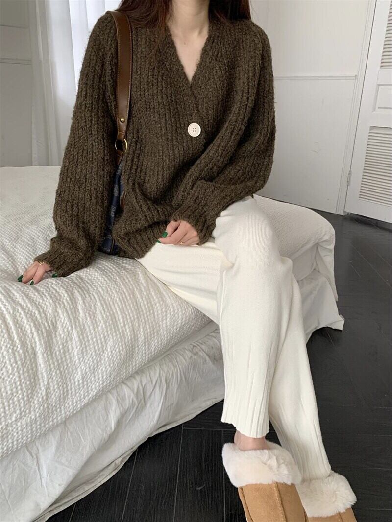 Nomikuma 因果ニットハーレムパンツ秋冬ソリッド女性のズボンレースアップウエストセーターパンツデ オータム 秋物 ウィンター 冬物 ソリッドカラー kor8378984945