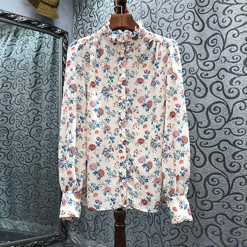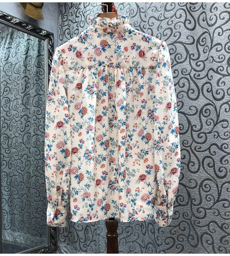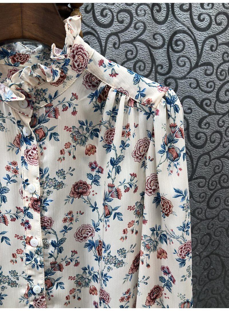 KUSAHIKI シックなフリルスタンドカラー花柄シフォンブラウス女性 2023 春シャツ長袖デ ロング スプリング 春物 kor5915339073