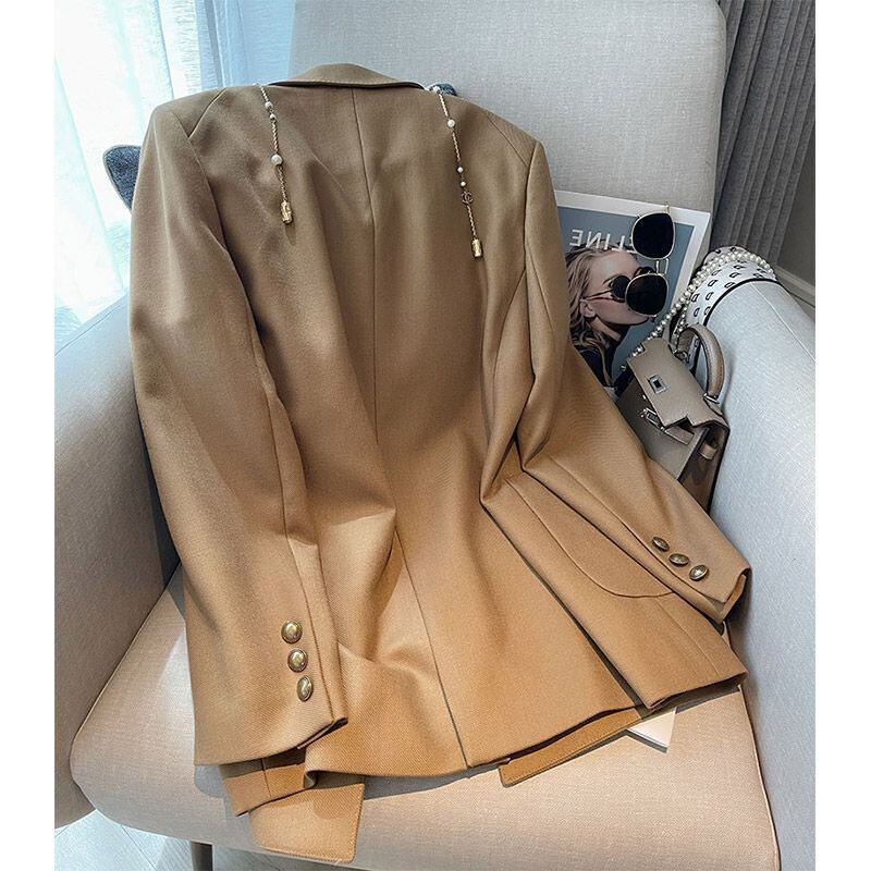 Nomikuma 2022 女性の秋のブレザーコートダブルブレストノッチカラースーツジャケットミディアムロングブレザー オータム 秋物 kor22677504419