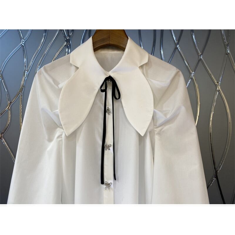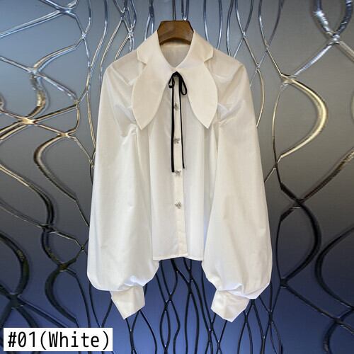 ノミクマ蝶ネクタイピーターパンカラーランタンスリーブブラウス女性 2023 春シャツ s リボン スプリング 春物 kor73875603504