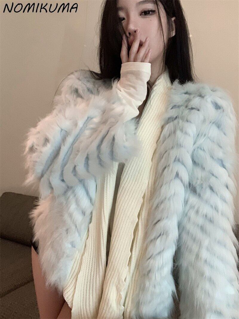 Nomikuma 毛皮パッチワークコート女性秋冬ジャケット因果ロング Slevee V ネックカーディガントップス オータム 秋物 ウィンター 冬物 Vネック kor33439102317
