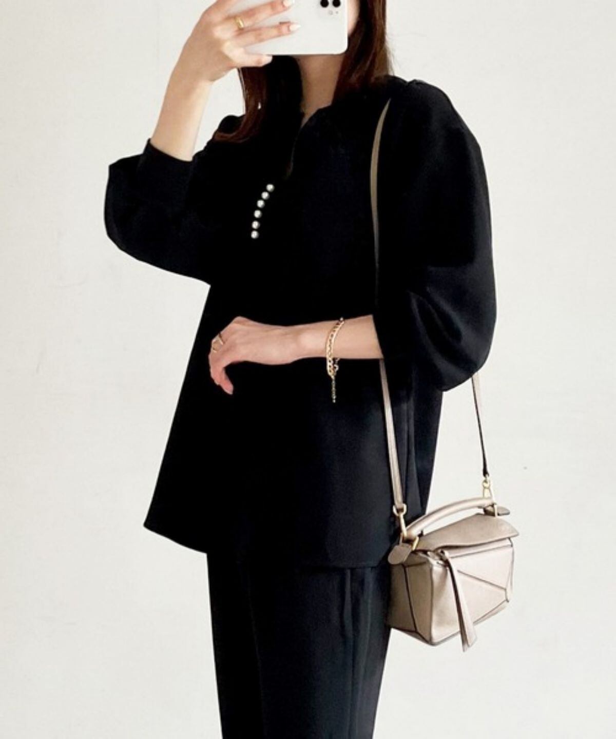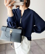 ノミクマVネックビーズレディーストップススタイル長袖無地プルオーバー春秋ブラウスシャツ ロング スプリング 春物 オータム 秋物 ソリッドカラー kor21146749416