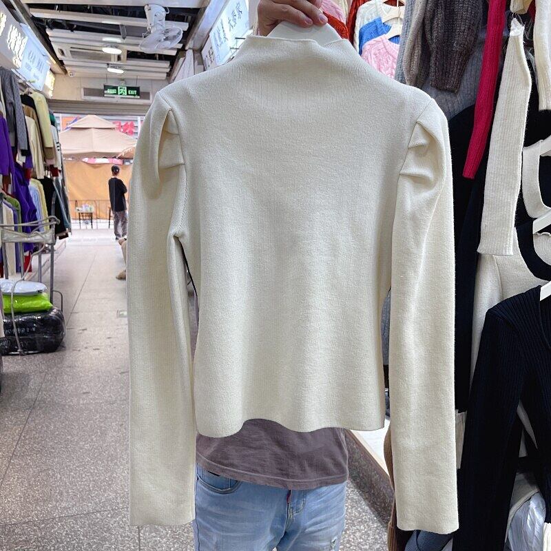 ノミクマ シック ヒットカラー ちょう結び パッチワーク プルオーバー ニット 秋冬 半衿 パフスリーブ ニットセーター リボン オータム 秋物 ウィンター 冬物 kor33724184893