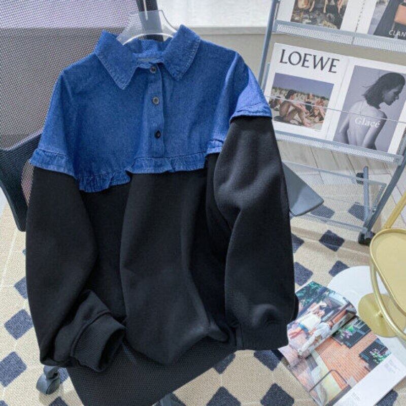 Nomikuma因果徳民パッチワークターンダウン襟プルオーバースウェットシャツ 2023 女性ジャンパー長袖女性パーカートップ ロング kor6647644587