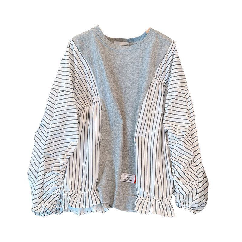 Nomikuma 因果ストライプパッチワークプルオーバーパーカートップ春秋パッチワークスウェットシャツ 2023 女性ジャンパー スプリング 春物 オータム 秋物 kor46264886717