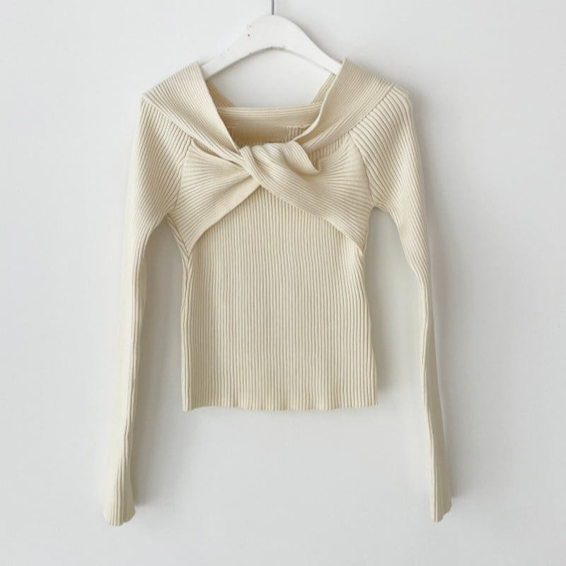 Nomikuma オフショルダー ツイスト セクシー ストラップレス ニット 長袖 スリム ストレッチ 春 秋 ニット セーター トップス ロング スプリング 春物 オータム 秋物 kor24764499308
