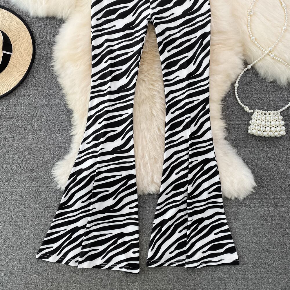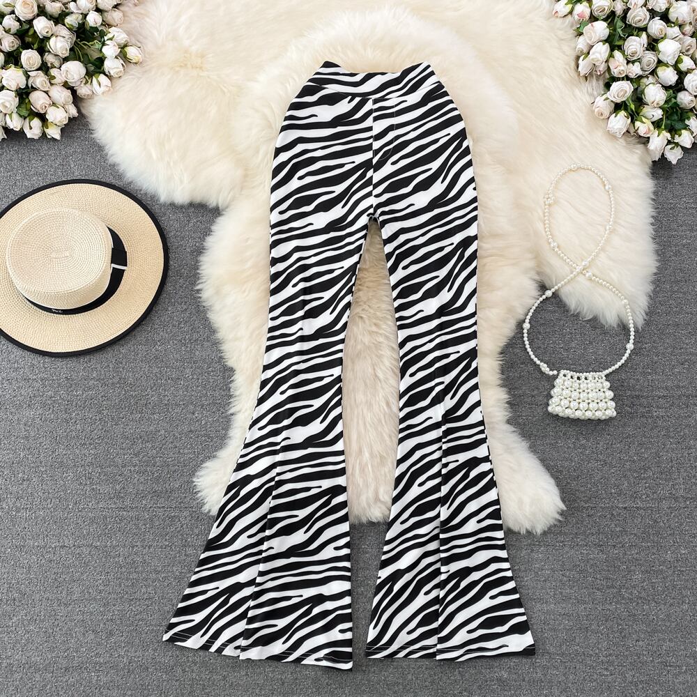 Nomikuma 春秋因果ウエスト ゼブラ ストライプ ロング フレア パンツ女性ズボン スプリング 春物 オータム 秋物 kor48195401708
