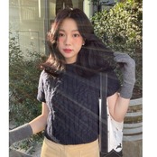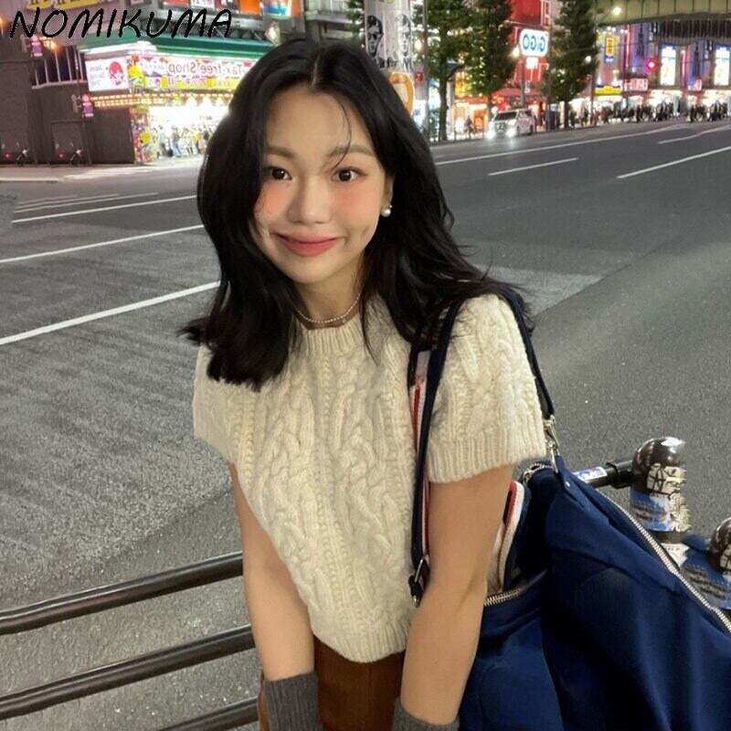 Nomikuma Oネックツイストニットウェア半袖秋冬女性セーターシック無地プルオーバーニットトップス ショート ハーフスリーブ オータム 秋物 ウィンター 冬物 ソリッドカラー kor56449484092