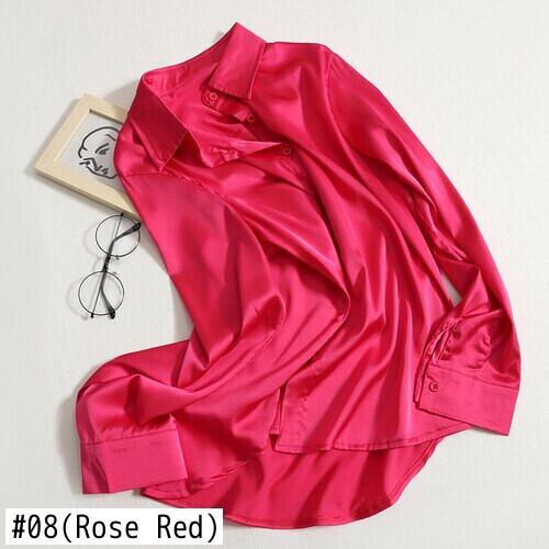 ノミクマサテン女性ブラウス因果長袖ターンダウン襟無地シャツ 2023 春デモーダ ロング スプリング 春物 ソリッドカラー kor25079768656