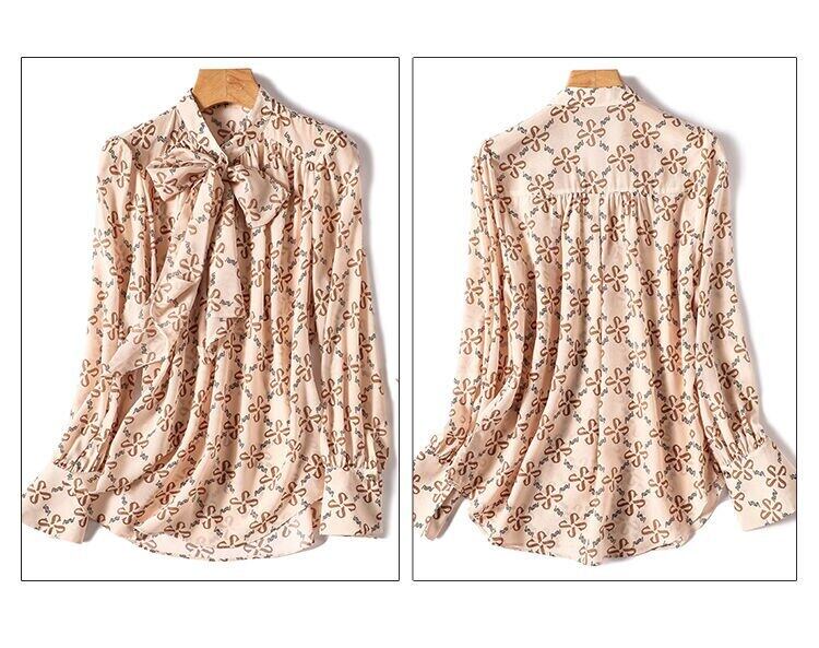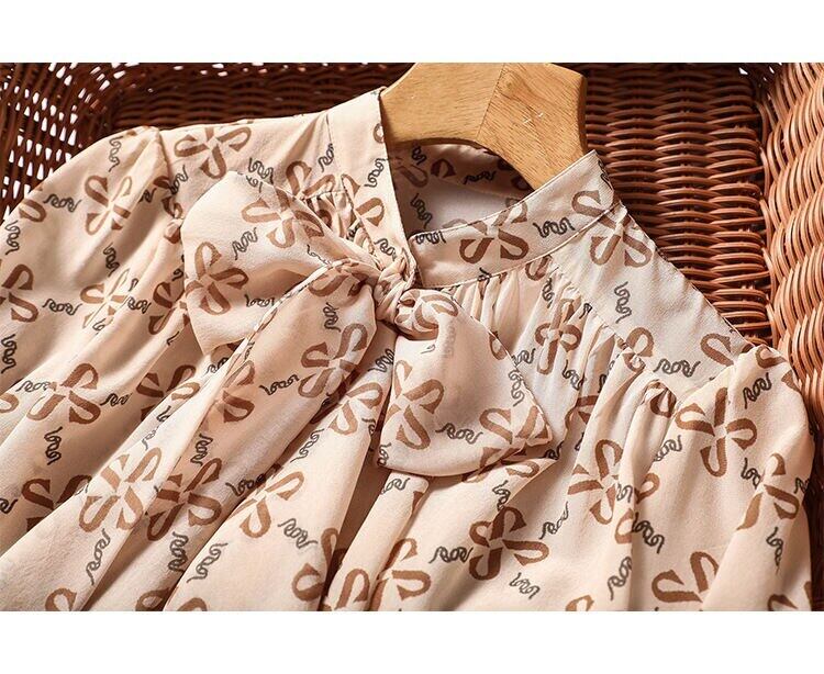 ノミクマプリント長袖プルオーバーブラウストップス弓包帯女性シャツ 2023 春 ロング リボン スプリング 春物 kor83908856176