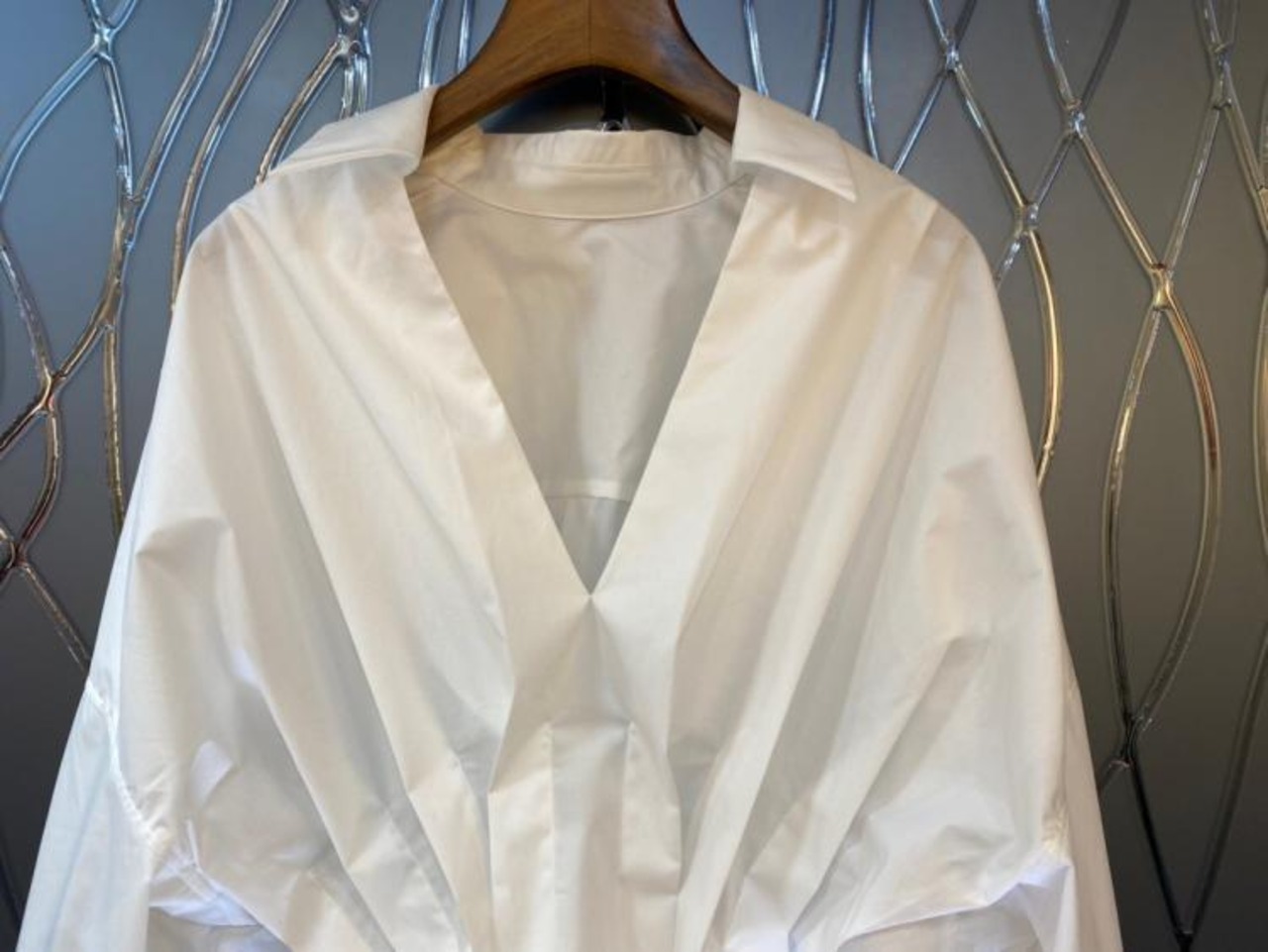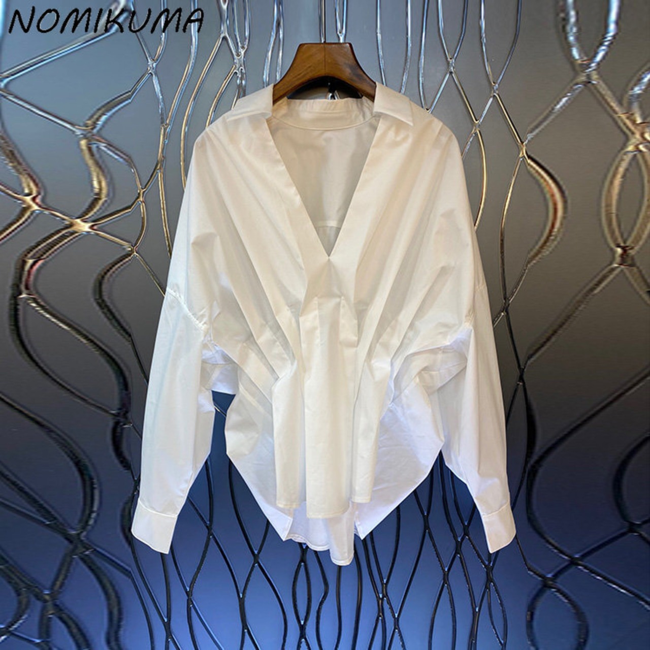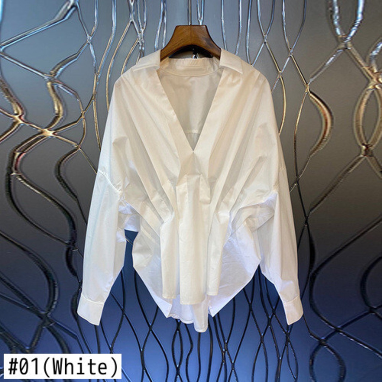 ノミクマ レディース トップス イレギュラーフォールド バットウィングスリーブ Vネック ブラウス シャツ 2023年 春 フェミニノ スプリング 春物 kor6275761023