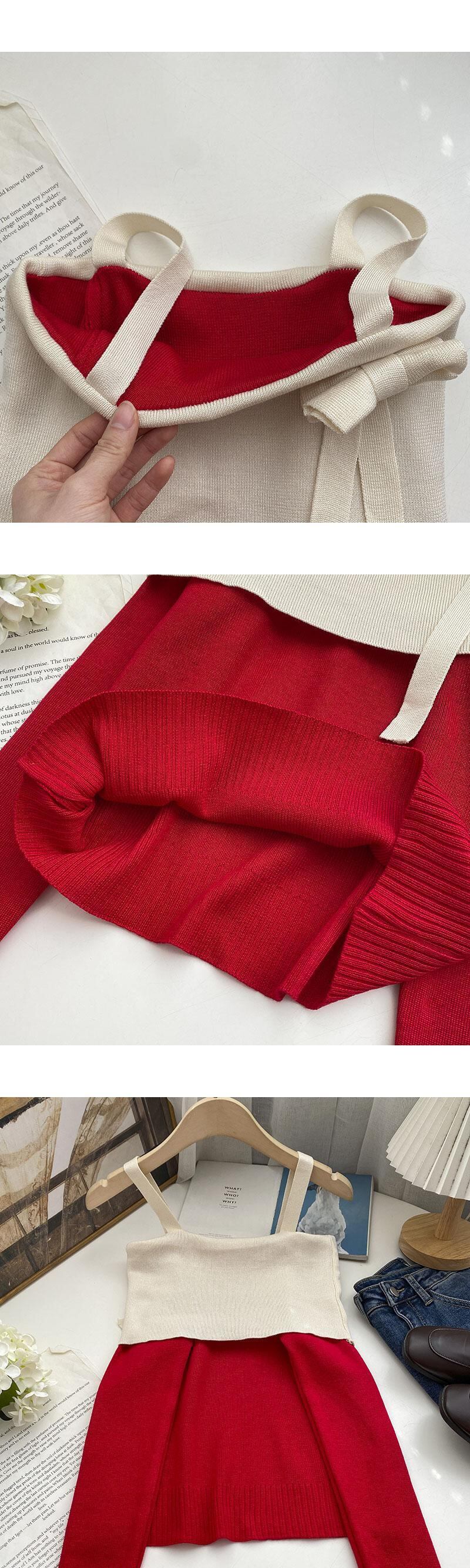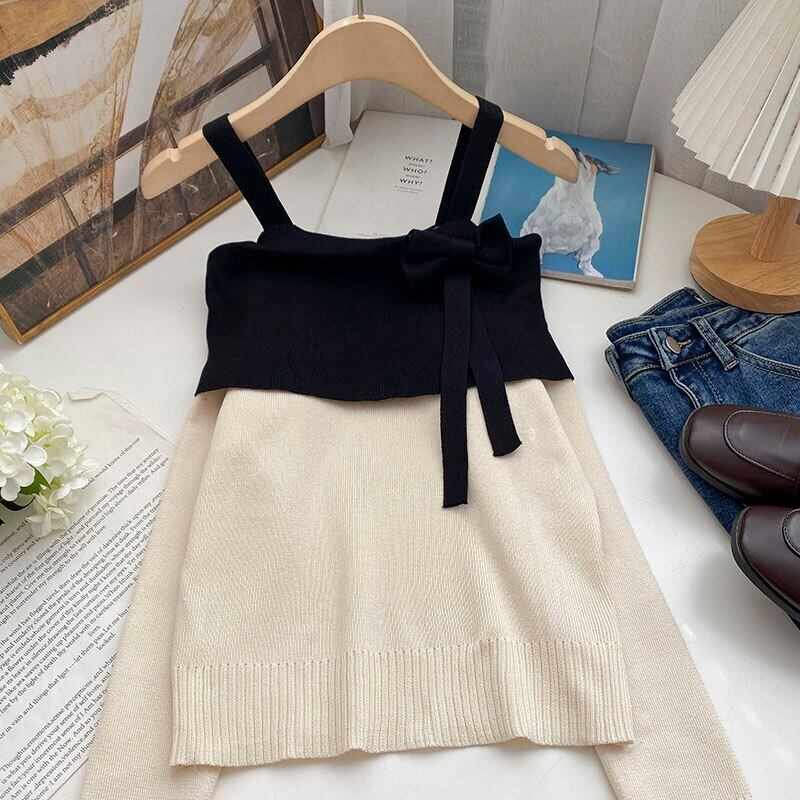 Nomikuma シックな 3D ちょう結びコントラストカラー長袖スリングニット女性 2023 春夏長袖プルオーバーセーター ロング リボン スプリング 春物 サマー 夏物 kor51896343045