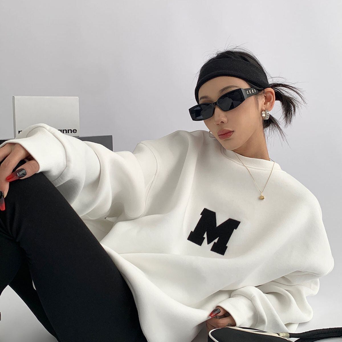 Nomikuma 文字プリントプルオーバースウェットシャツ因果 O ネック長袖パーカートップ春秋の女性ジャンパー ロング スプリング 春物 オータム 秋物 Oネック kor35601320574