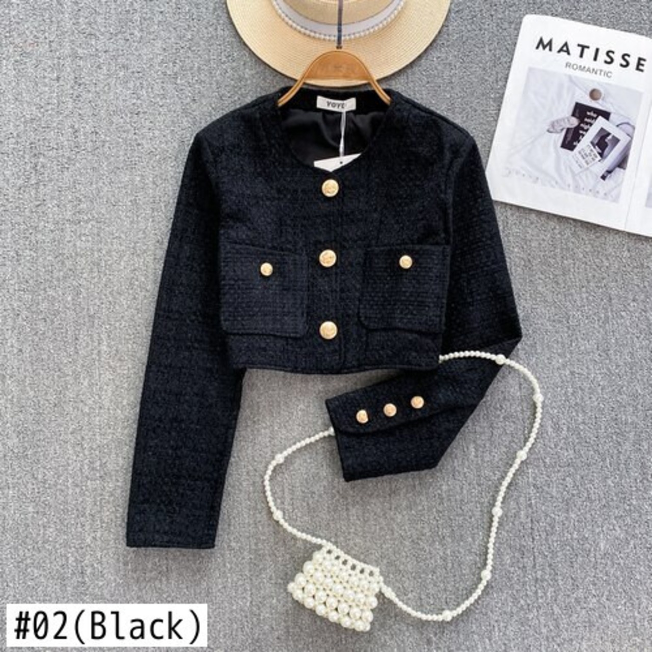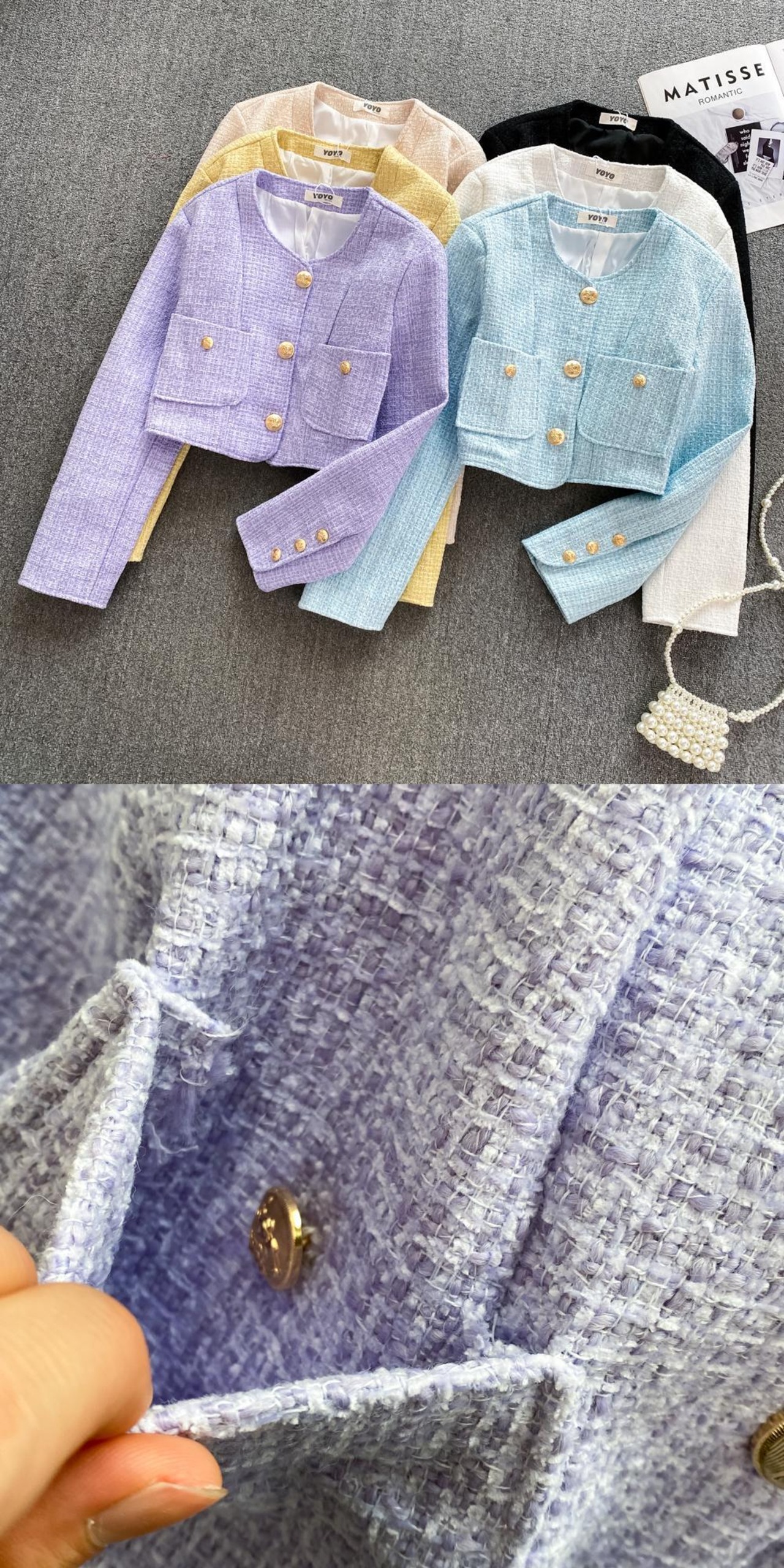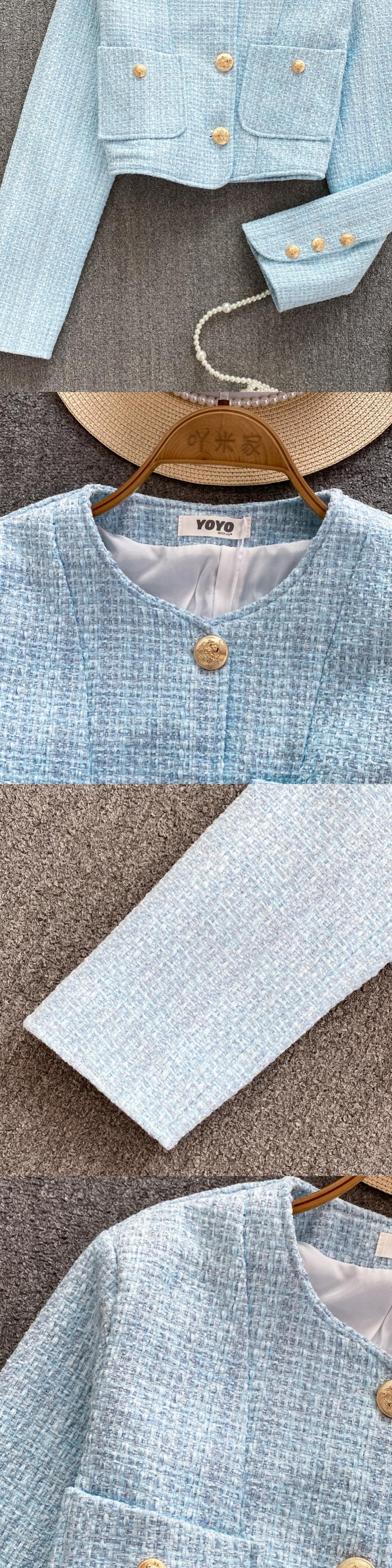 Nomikuma 2023 春ショート女性コートツイード長袖 O ネックジャケット因果シングルブレスト生き抜くトップス ロング スプリング 春物 Oネック kor67309326722