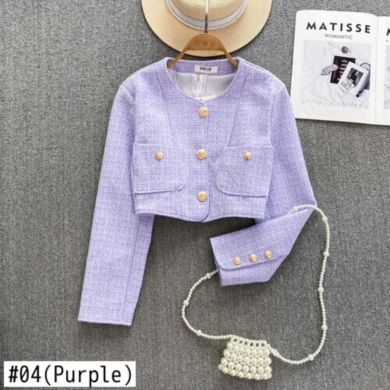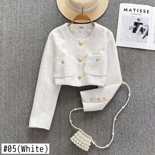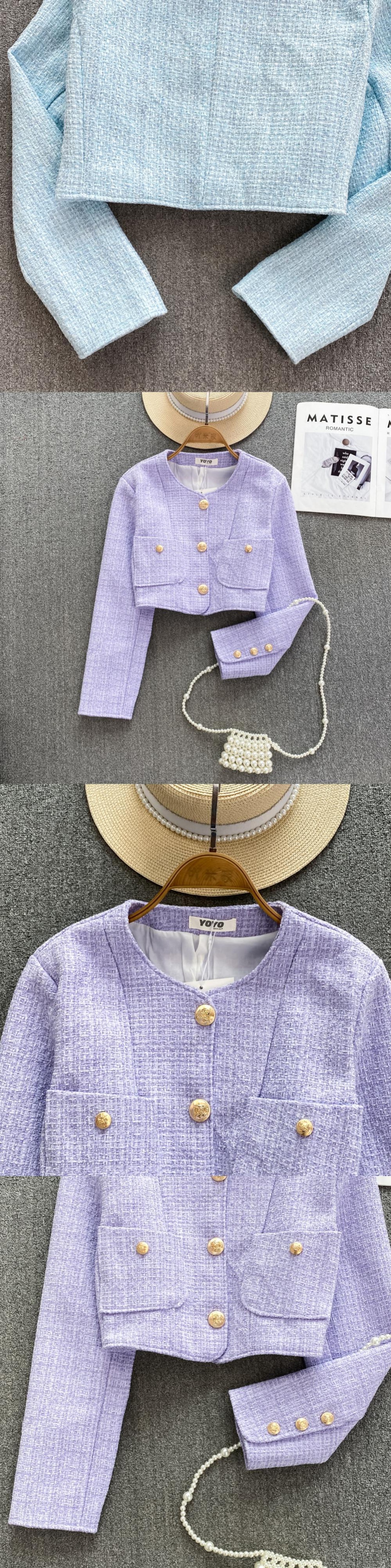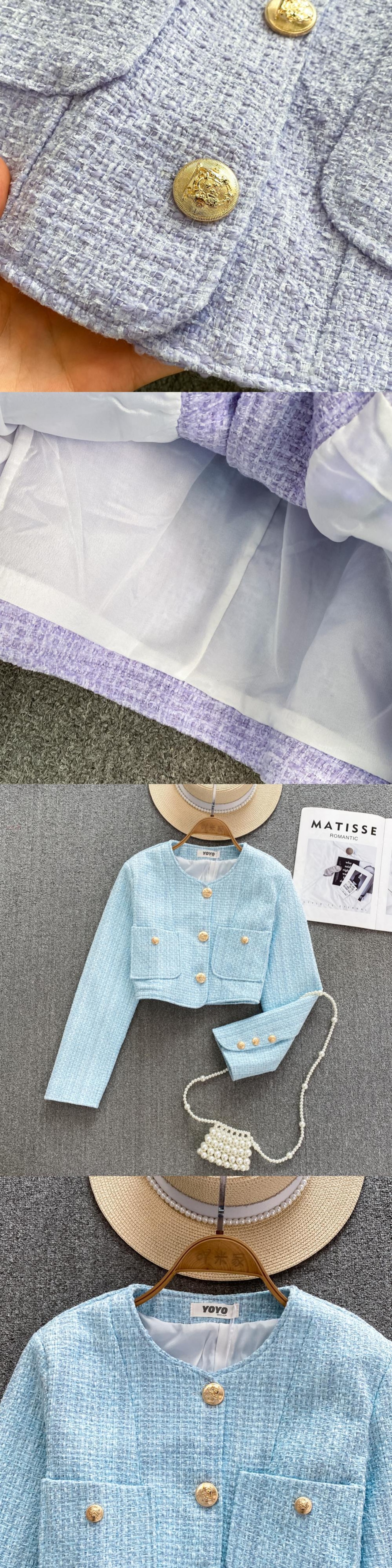 Nomikuma 2023 春ショート女性コートツイード長袖 O ネックジャケット因果シングルブレスト生き抜くトップス ロング スプリング 春物 Oネック kor67309326722