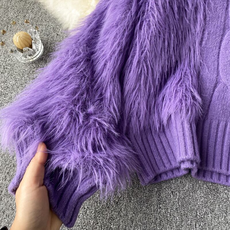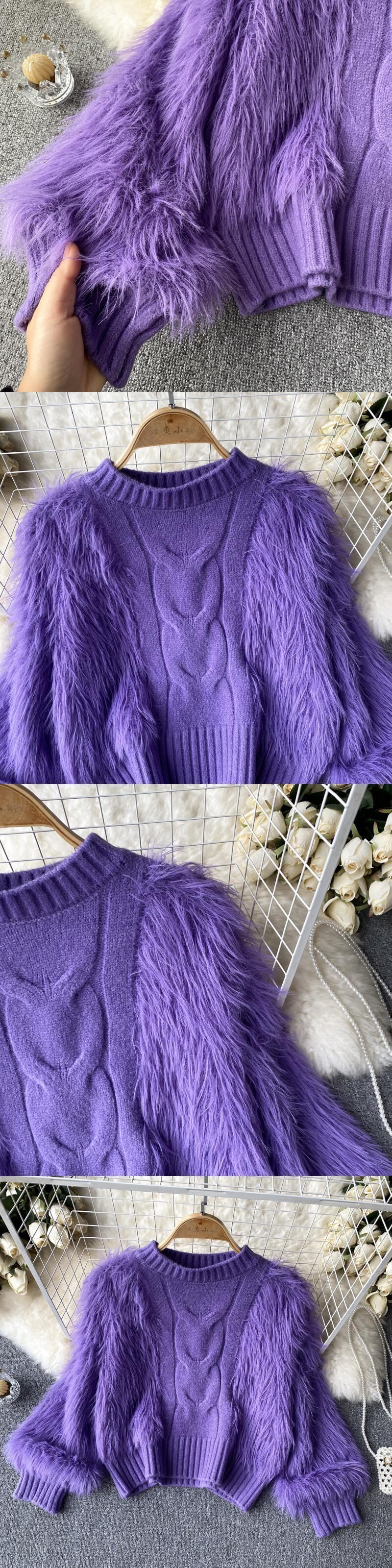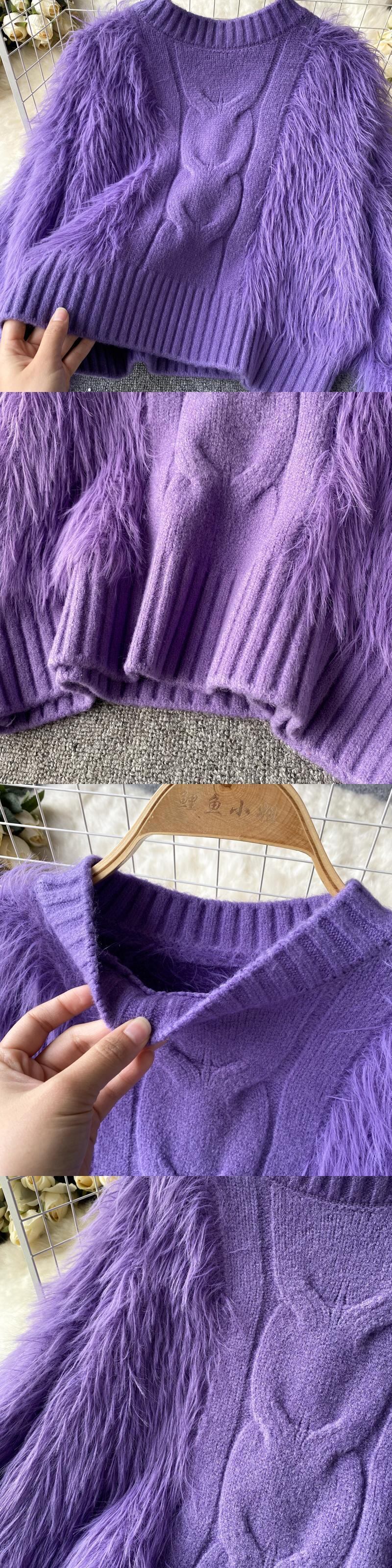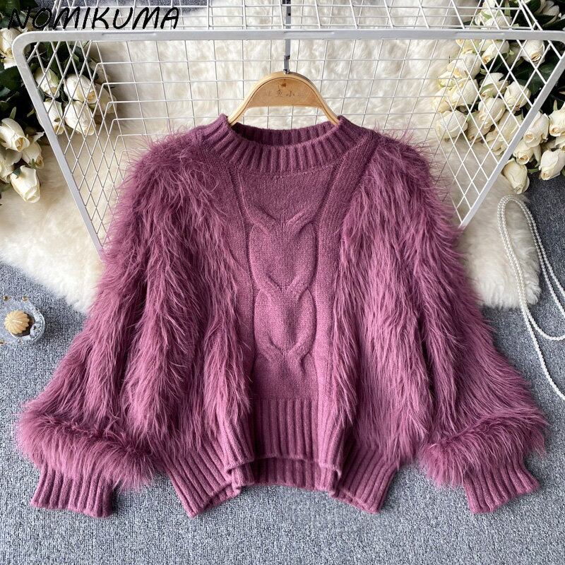 ノミクマ テル ショート モヘア ニット セーター 秋冬 プルオーバー 長袖 Oネック プルオーバー ニット ロング オータム 秋物 ウィンター 冬物 kor41242893823
