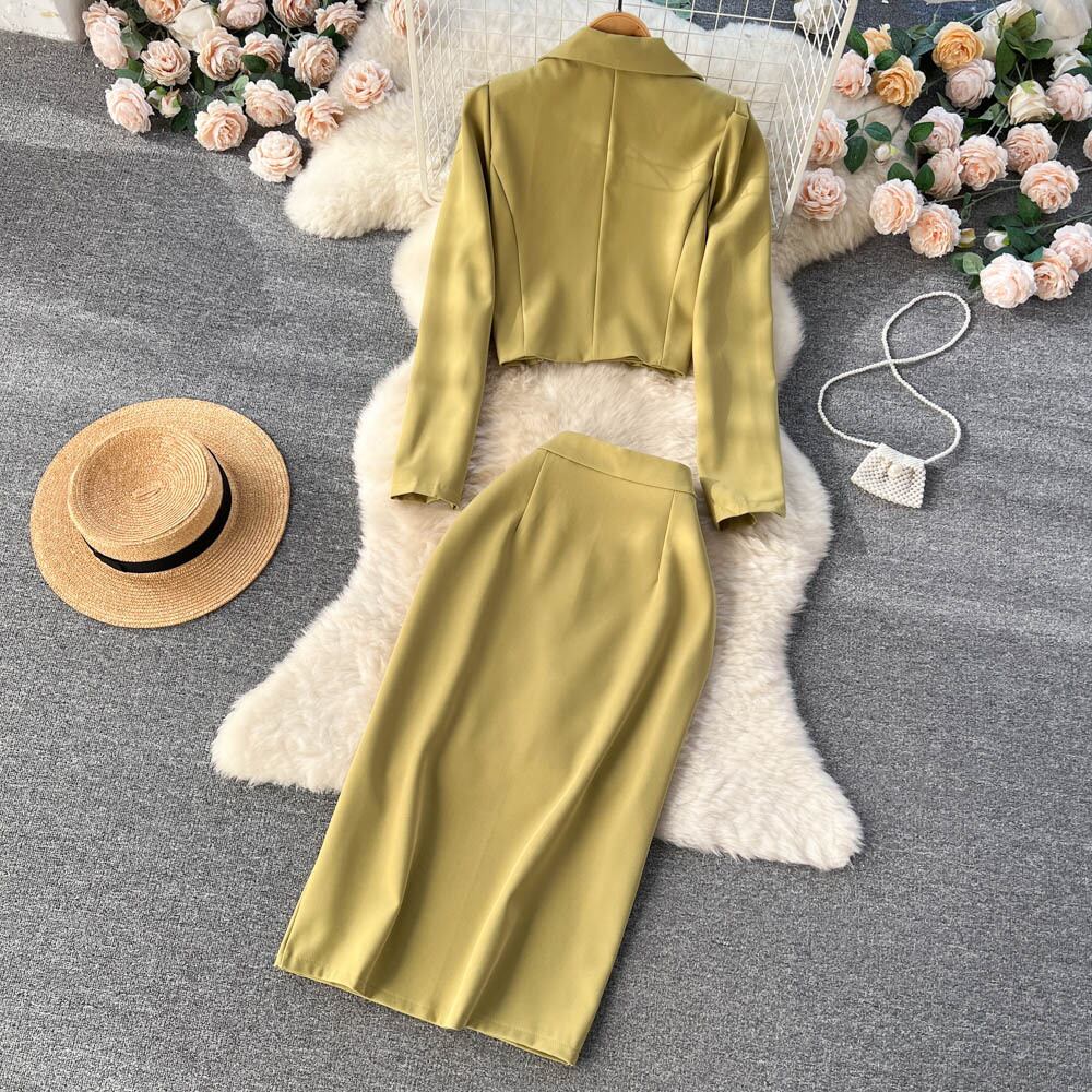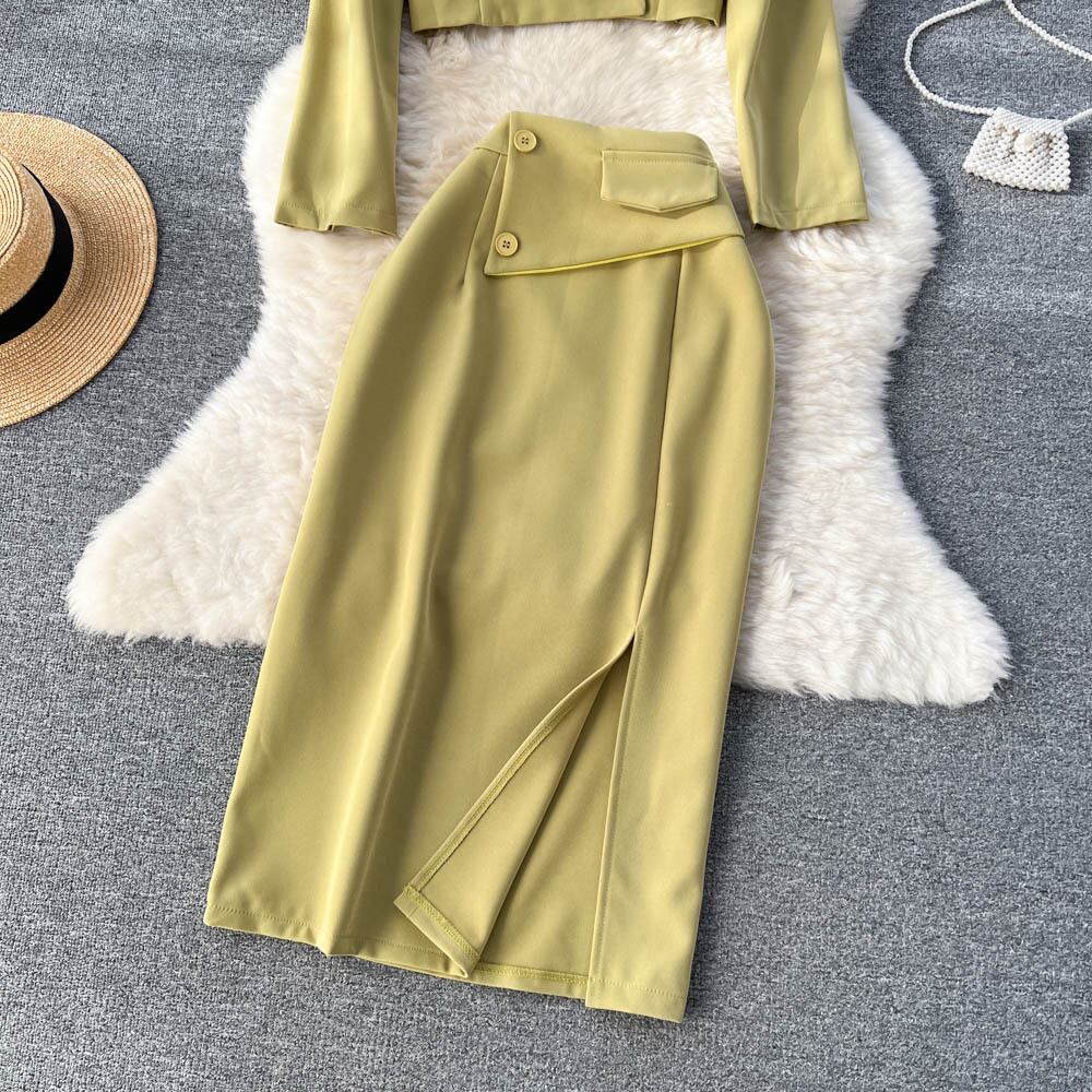 Nomikuma 春秋の女性セットノッチカラーショートカーディガンコート + ウエストスプリットスカート 2 ピース スプリング 春物 オータム 秋物 kor76965888269