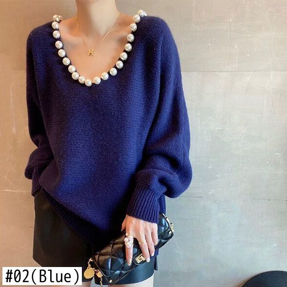 Nomikuma プルビーズ O ネック 2023 ニットセーター因果長袖プルオーバー女性ニットトップス ロング Oネック kor14538058264