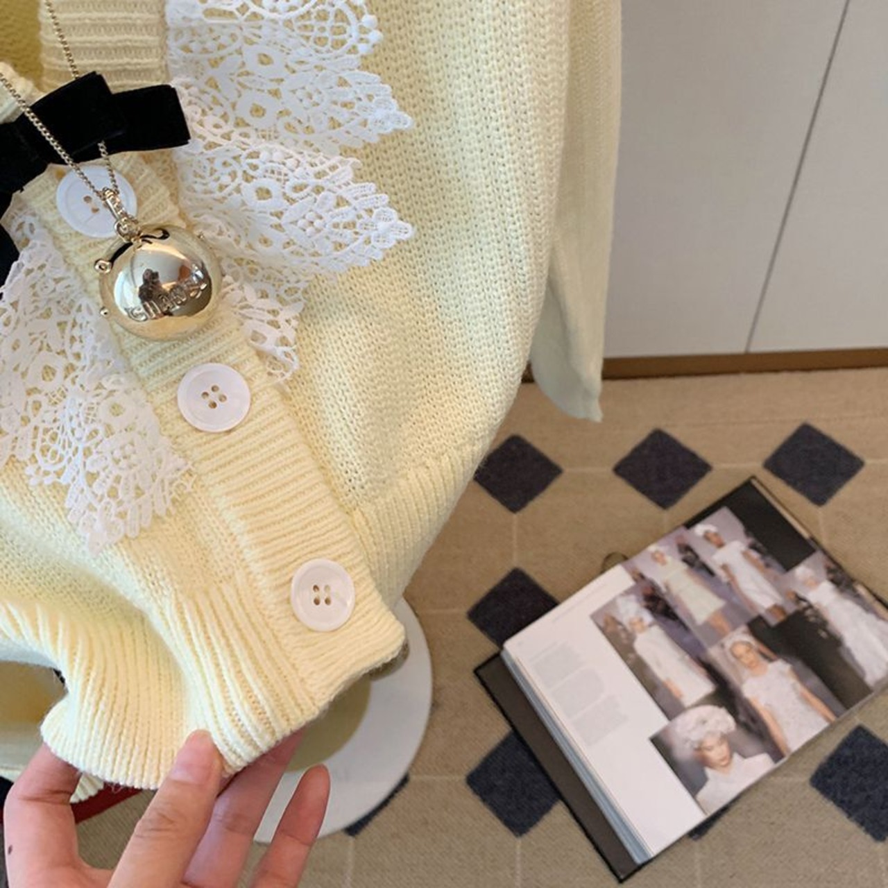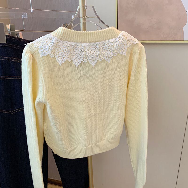 Nomikuma シックなレースパッチワーク V ネックシングルブレストニットトップス 2023 年春の女性長袖ニットカーディガン ロング スプリング 春物 Vネック kor12442241208