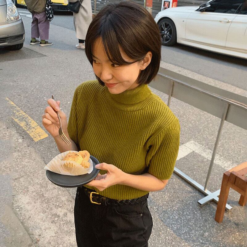 ノミクマ シック 秋冬 プルオーバー タートルネック 半袖 ニット セーター 無地 ニット プルオーバー トップス ショート ハーフスリーブ オータム 秋物 ウィンター 冬物 ソリッドカラー kor14346523402
