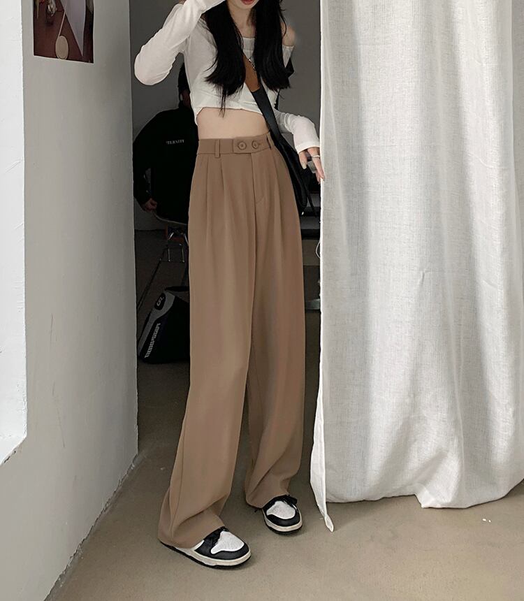 Nomikuma ウエスト女性スーツパンツ 2023 春長ズボン因果無地ワイドレッグパンツデ ロング スプリング 春物 ワイドパンツ ソリッドカラー kor89216515753