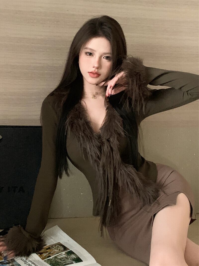 Nomikuma 毛皮パッチワークスリムレースアップニットカーディガントップス 2023 長袖 V ネックセクシーな女性セーターニットコート ロング Vネック kor88514058688