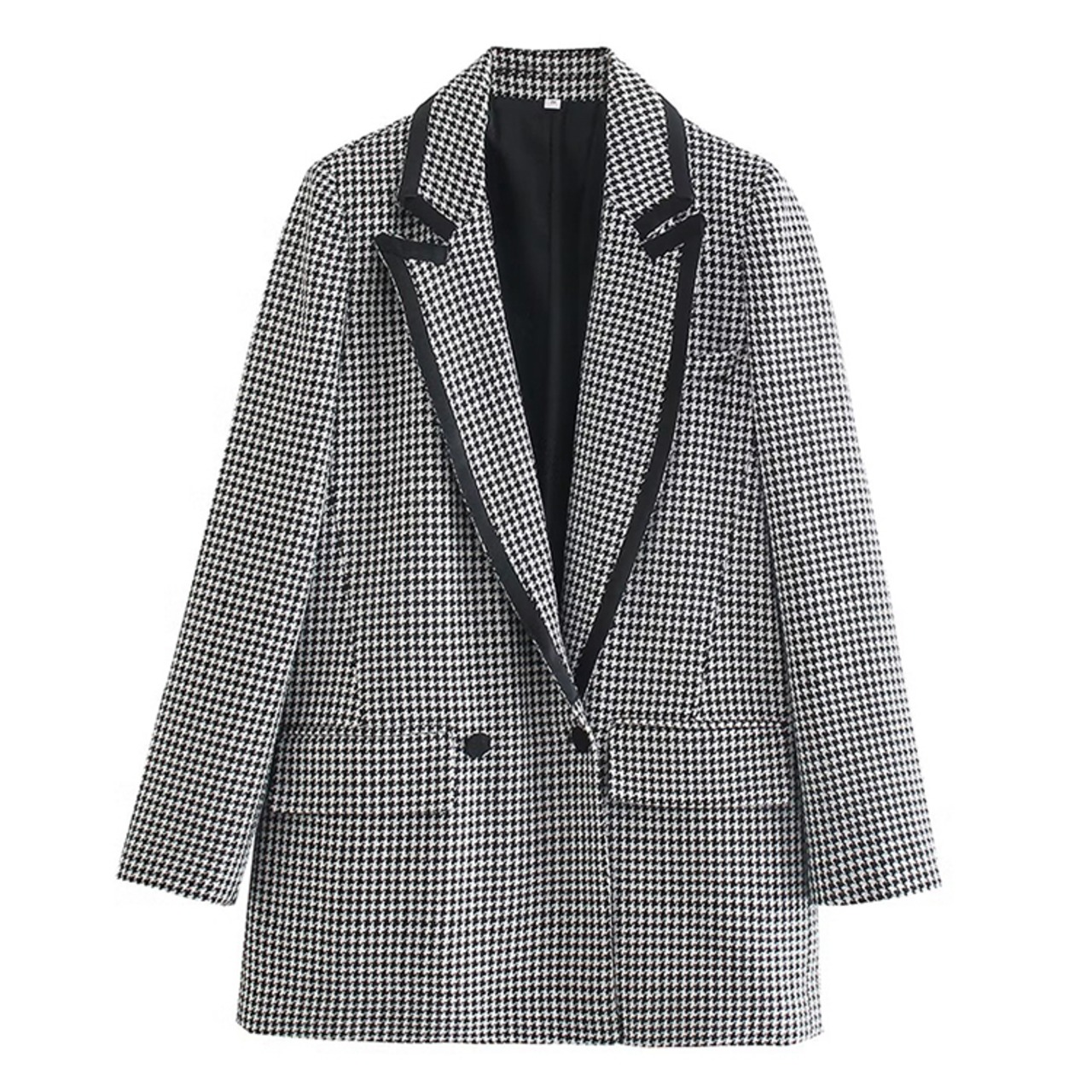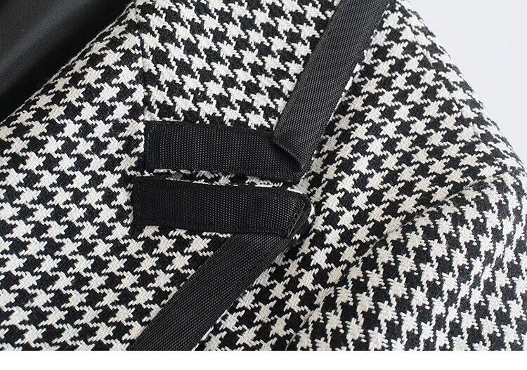 ノミクマ鳥格子ターンダウンカラーブレザーダブルブレスト長袖スーツジャケットブレザーコート ロング kor59265335998
