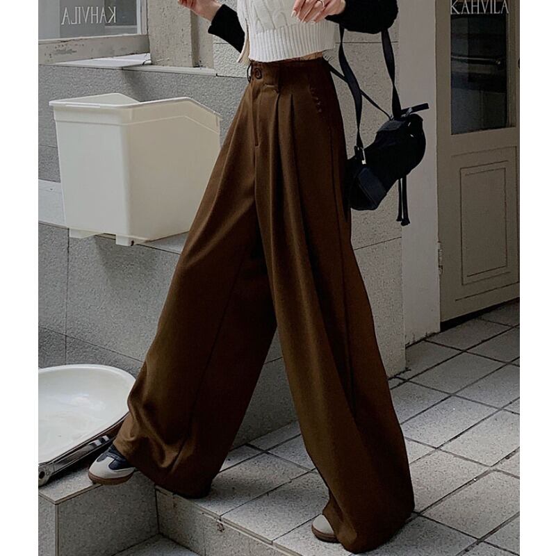 Nomikuma ウエスト女性スーツパンツ 2023 春長ズボン因果無地ワイドレッグパンツデ ロング スプリング 春物 ワイドパンツ ソリッドカラー kor81202189596