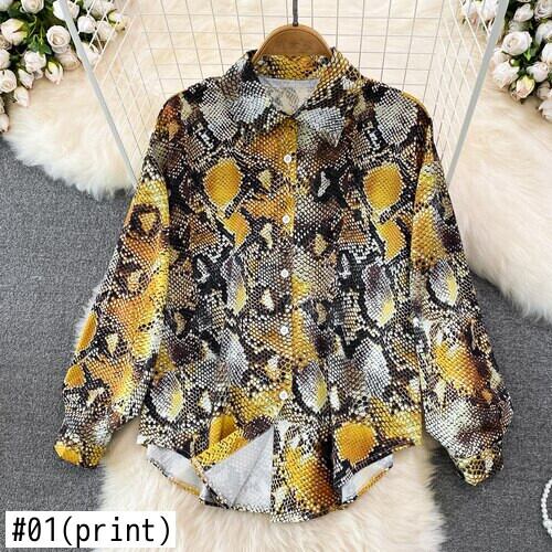 Nomikuma 2023 春秋ターンダウン襟プリント因果ブラウストップス女性長袖シャツ ロング スプリング 春物 オータム 秋物 kor81945480659