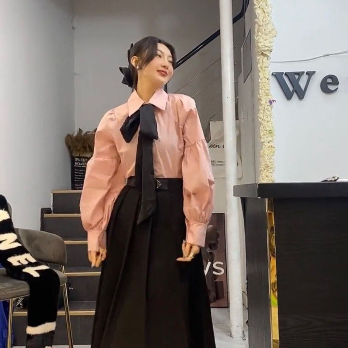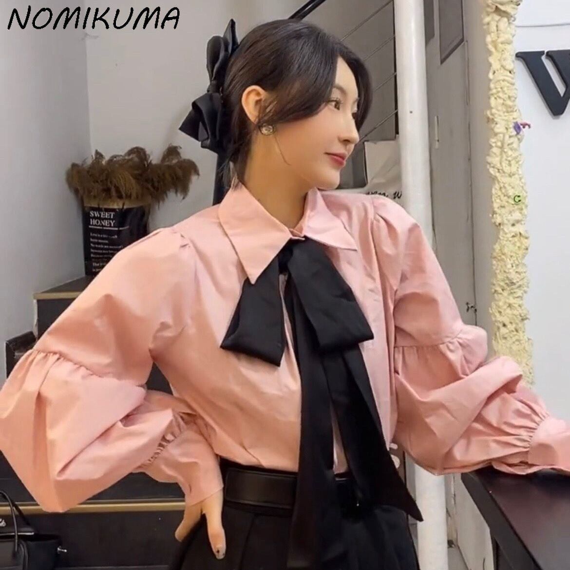 Nomikuma シックなパフスリーブ春ブラウストップス 2023 シックな甘いヒットカラーちょう結び女性シャツ リボン 大人ガーリー スウィート キュート カジュアル スプリング 春物 kor71842679343