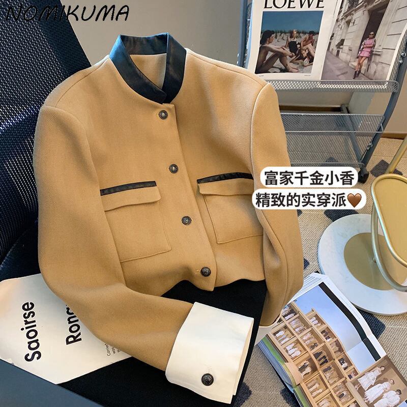 ヒットカラースタンドネック長袖コート女性春 2023 ジャケットスタイルショート生き抜くトップス ロング スプリング 春物 kor30992696806