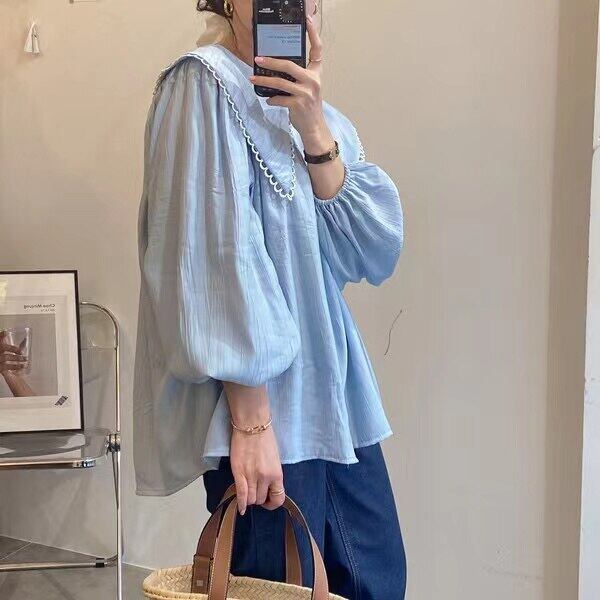 Nomikuma シックなピーターパンカラー女性ブラウストップス因果春秋シャツ 2023 デモーダ スプリング 春物 オータム 秋物 kor30633017133
