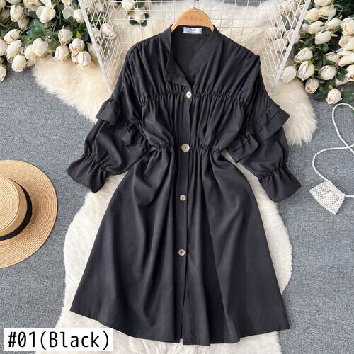 Nomikuma 春夏ハーフパフスリーブ女性ドレスひだシングルブレスト Vestidos 2023 スイートシックなドレス 大人ガーリー スウィート キュート カジュアル スプリング 春物 サマー 夏物 kor80910194142