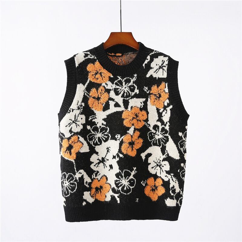 Nomikuma 花ニットセーターチョッキ因果ノースリーブ O ネックプルオーバー春秋の女性ニットウェアベストトップス スプリング 春物 オータム 秋物 Oネック フラワーデザイン kor37584476005
