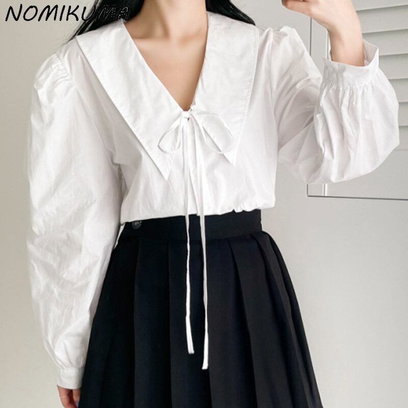 Nomikuma 春レースアップピーターパン襟ブラウスシャツパフスリーブレディーストップス De Moda 2023 スプリング 春物 kor14775328165
