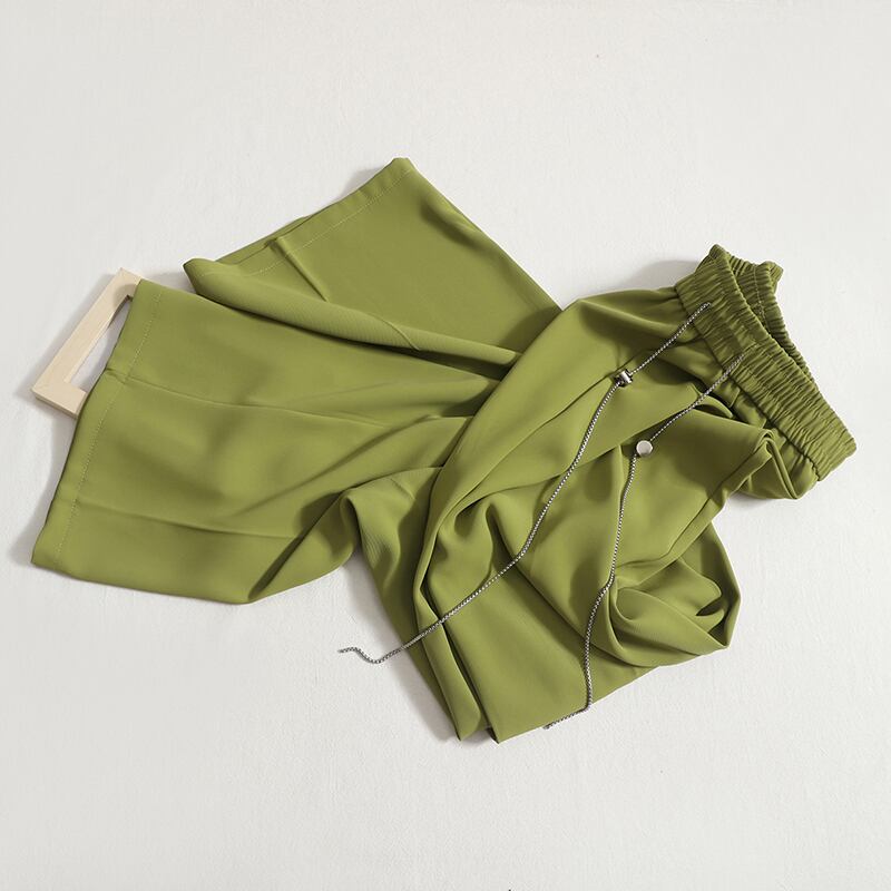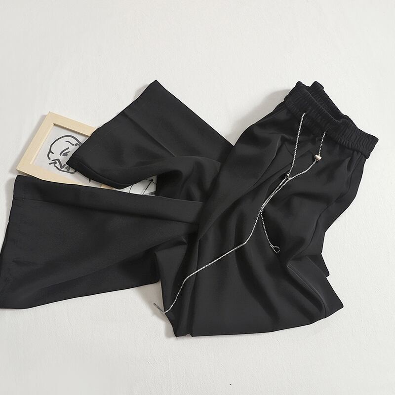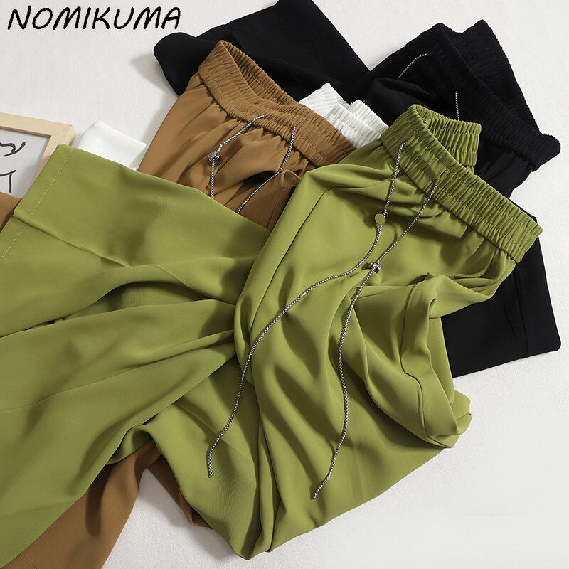 Nomikuma 弾性ウエストチェーンワイドレッグパンツ女性春秋 2023 ズボン因果固体スーツパンツ pantalones エラスティック 伸縮 スプリング 春物 オータム 秋物 ワイドパンツ ソリッドカラー kor99049305844