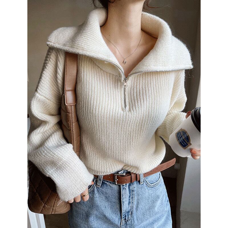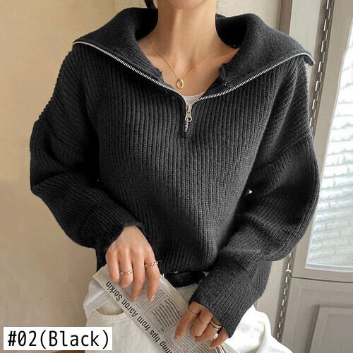 Nomikuma ジッパーターンダウン襟ニットセーター女性長袖プルオーバー因果秋冬暖かいニットトップス ロング オータム 秋物 ウィンター 冬物 kor98381745906