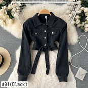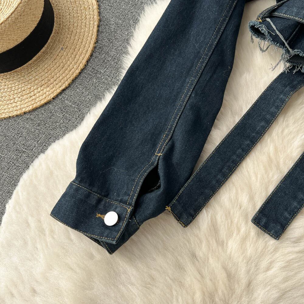 ノミクマショートバンデージスリムウエストデミンコートターンダウンカラーカウボーイ春秋ジーンズ生き抜くジャケット スプリング 春物 オータム 秋物 kor56526269033