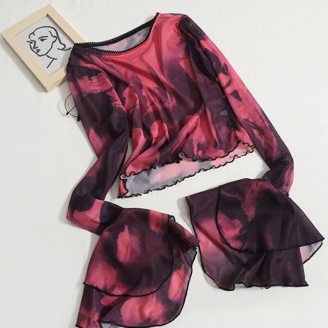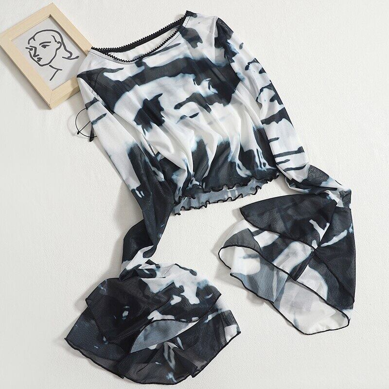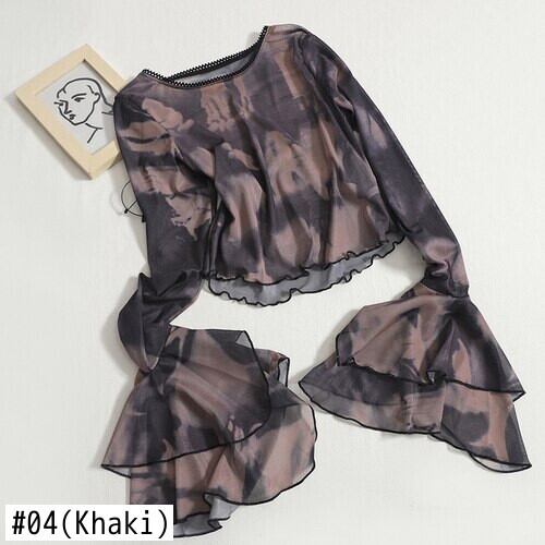 Nomikuma 絞り染めスリムクロップトップス女性 2023 春夏グラフィック Tシャツ Eegant フレアスリーブ Tシャツトップ スプリング 春物 サマー 夏物 kor11854140604