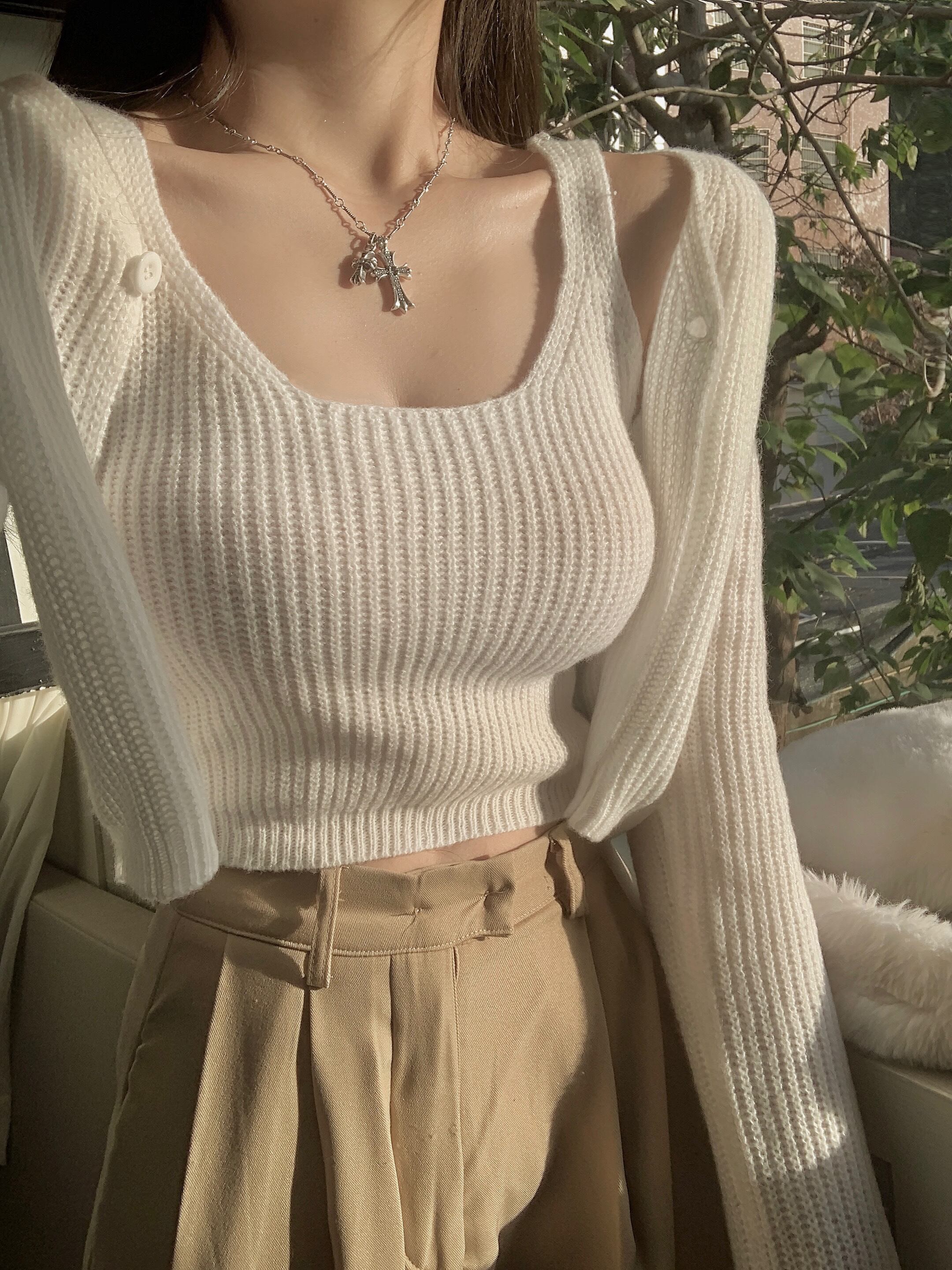 Nomikuma 2023 春ニットツーピーストップセット因果カーディガンセーターコート + ベーシックスリムスリングベスト女性スーツ スプリング 春物 kor12886547294