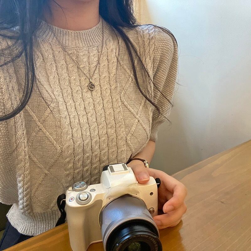 Nomikuma ツイストプルオーバーショートニットトップス因果 O ネックパフスリーブセーター 2023 春の女性プルオーバーニット スプリング 春物 Oネック kor32291850857