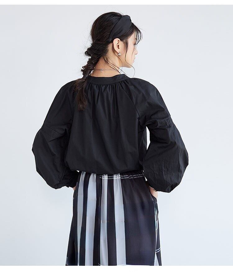 Nomikuma 2023 春ランタンスリーブスタンドカラーブラウストップス因果無地女性シャツシック スプリング 春物 ソリッドカラー kor57322882289