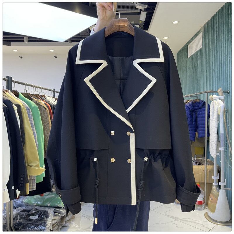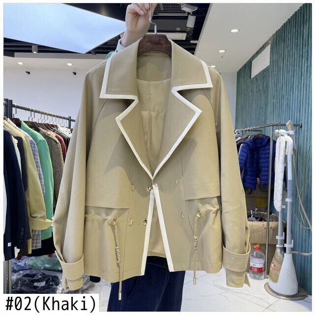 Nomikuma 春秋ヒットカラー因果女性コートダブルブレスト巾着スリムウエストジャケット生き抜くトップス スプリング 春物 オータム 秋物 kor94280552517