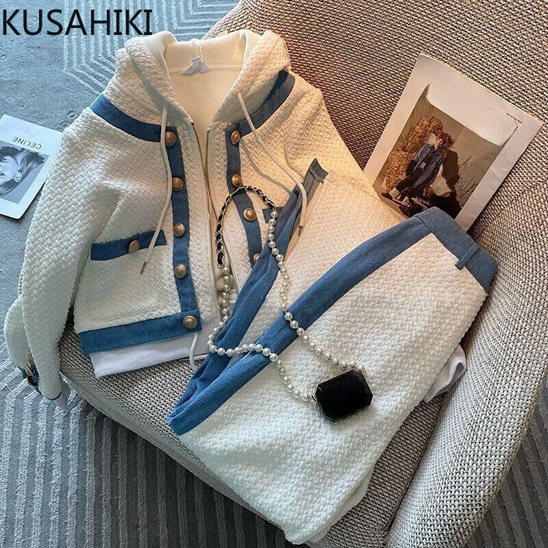 Nomikuma 春秋フード付きダブルブレストジッパー長袖コート + ウエストワイドレッグロングパンツ 2 点女性セット スプリング 春物 オータム 秋物 ワイドパンツ kor58825421580